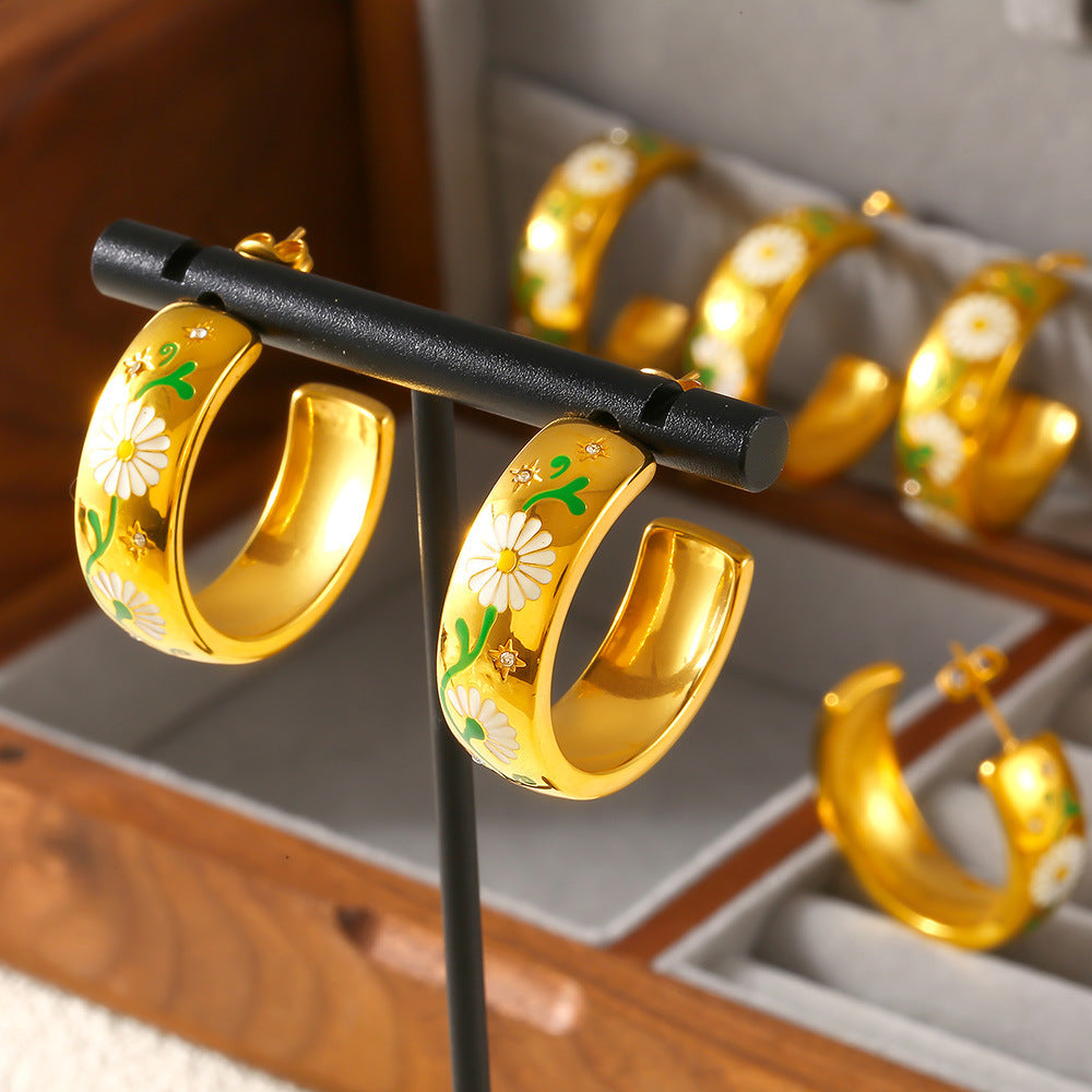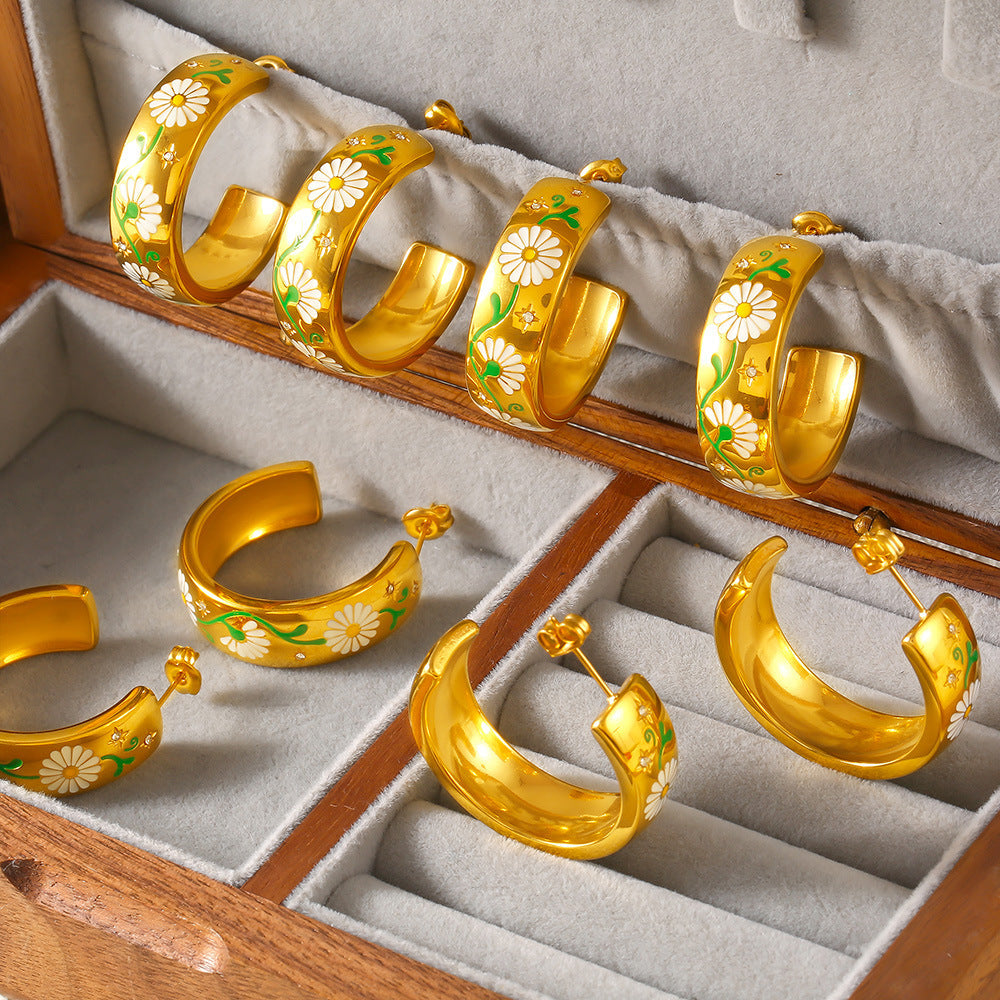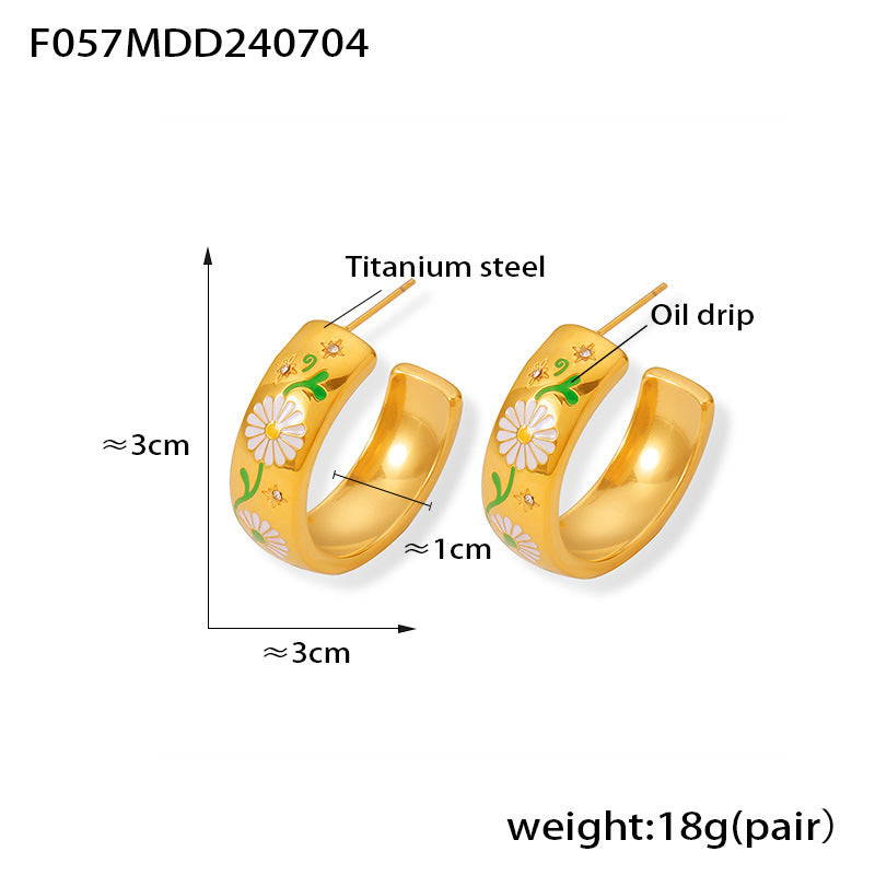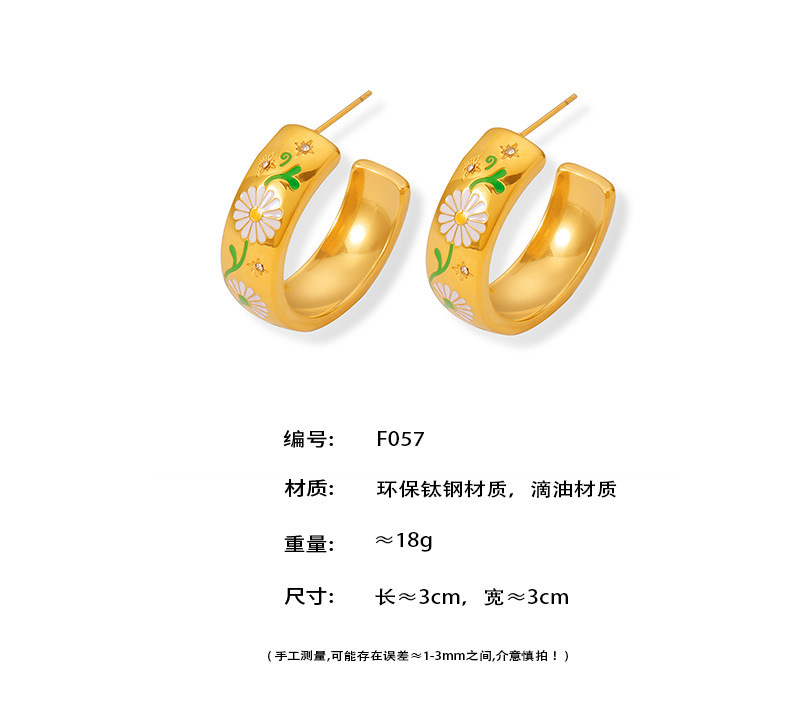 B廠【F057】ins跨境新款時尚不掉色C形滴油耳環鈦鋼鍍18k金小眾設計氣質耳飾 24.07-2