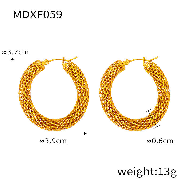 B廠【F058-061】歐美新款麻花C型鈦鋼耳環ins風優雅時尚鍊子型耳扣女保色耳環 24.03-3