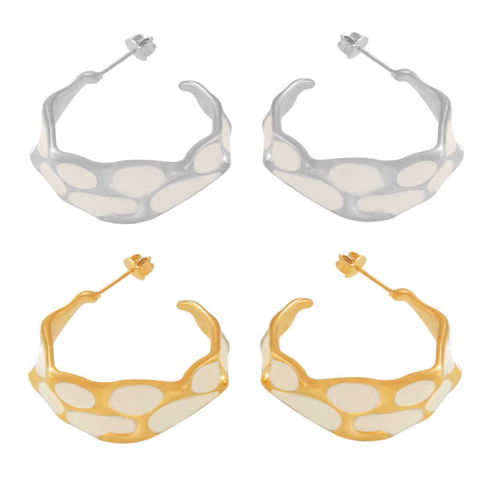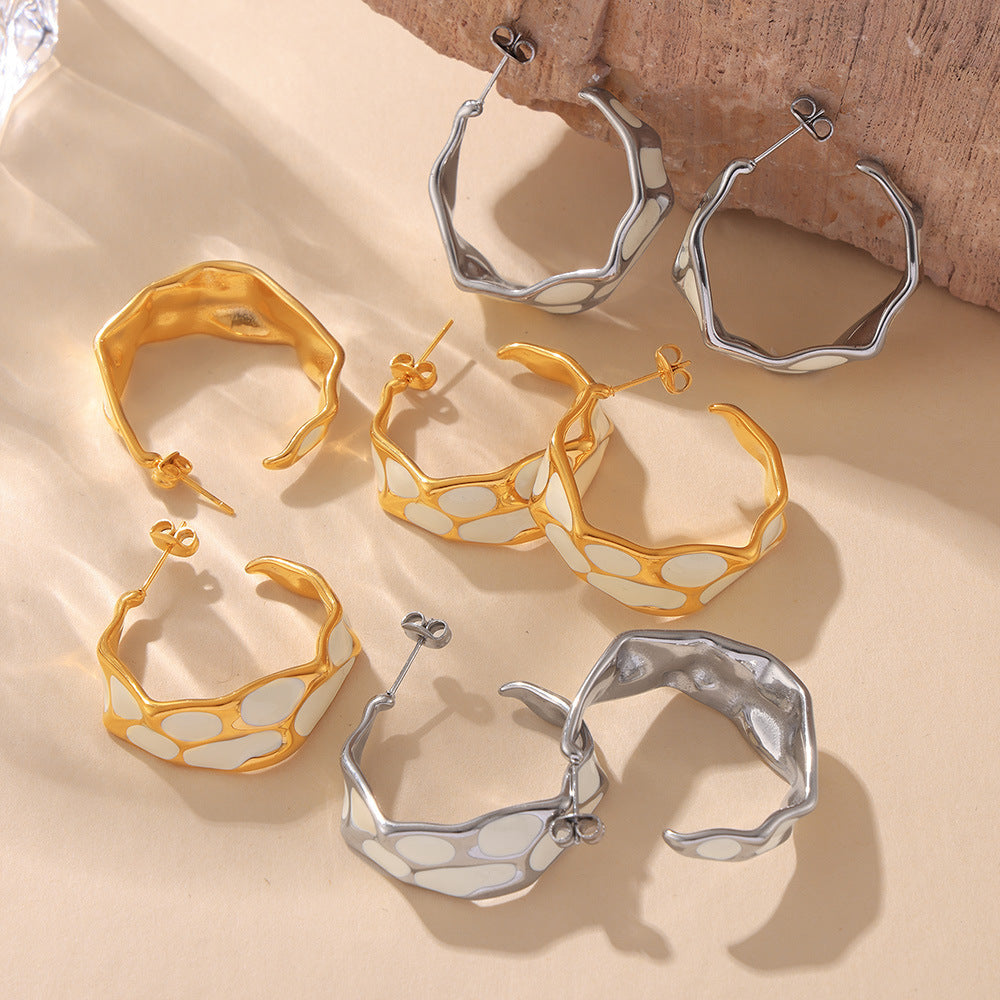 B廠【F1023】歐美復古豹紋滴油金色耳環簡約時尚個性設計鈦鋼鍍18k金輕奢耳飾 24.07-4