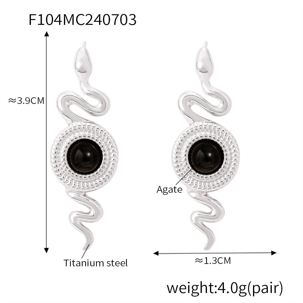 B廠【F104】時尚跨國歐美風小眾設計感蛇形耳環個性鈦鋼鍍18k金鑲天然石耳環 24.07-2
