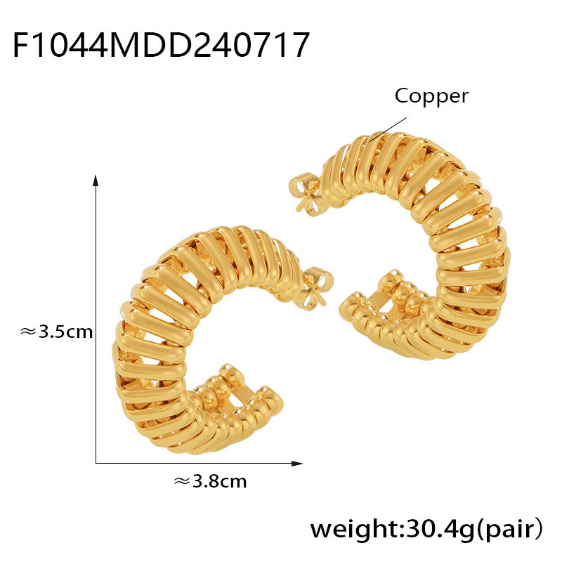 B廠【F1044】歐美ins風C型彈簧鏤空線條耳環個性小眾設計銅材質鍍金女式耳環 24.07-4