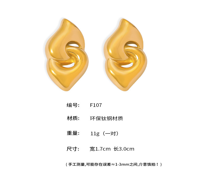 B廠【F107】歐美跨境熱銷幾何雙環扣圈不掉色氣質耳環女鈦鋼鍍18k金時尚耳環 24.07-2