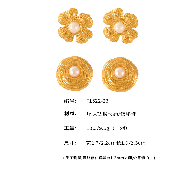 B廠【F1074-F1522】法式復古小眾花朵耳環鑲嵌貝珠女耳環小香風輕奢鈦鋼鍍金飾品 24.05-3