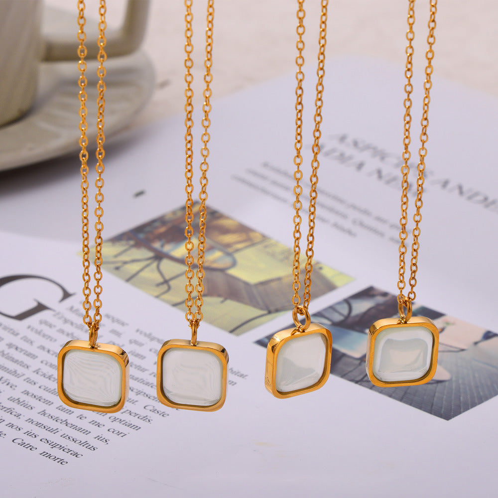 B廠【F108-P108】中古風簡約時尚幾何方形樹脂吊墜氣質輕奢鈦鋼鍍金耳環項鍊套裝女 24.03-4