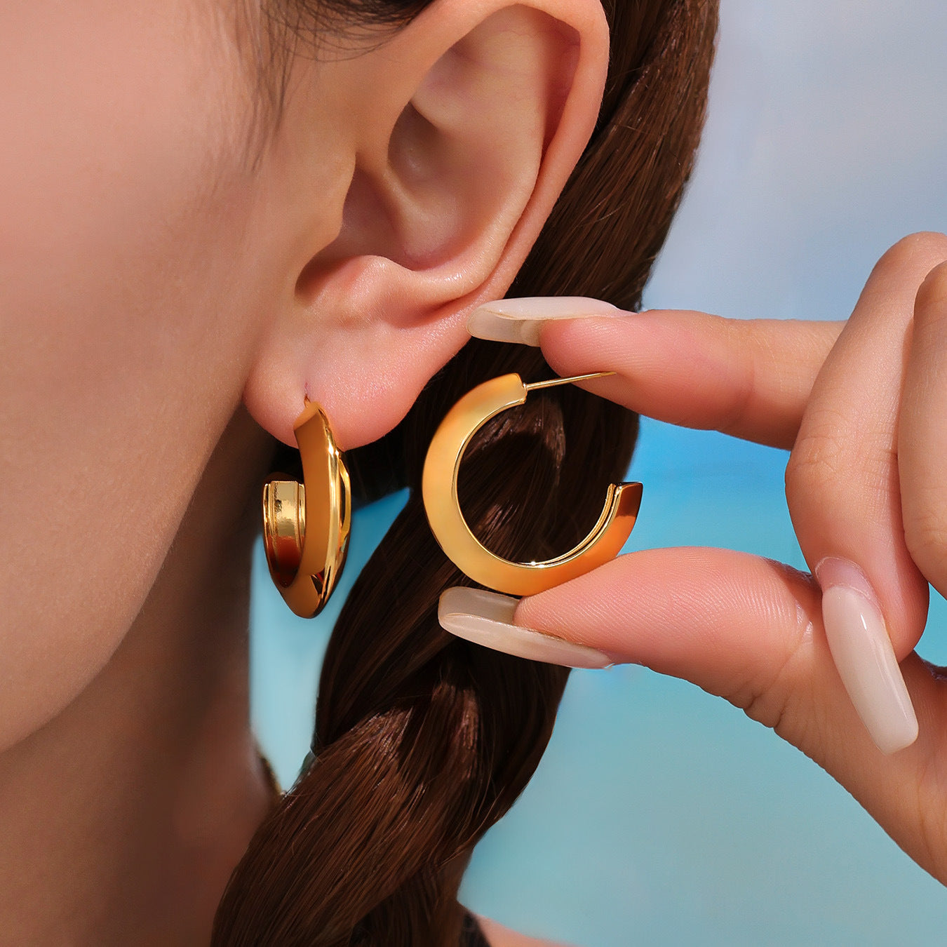 B廠【F1118】不鏽鋼幾何C形多型號拼色耳環耳環18k金百搭個性氣質 25.07-4