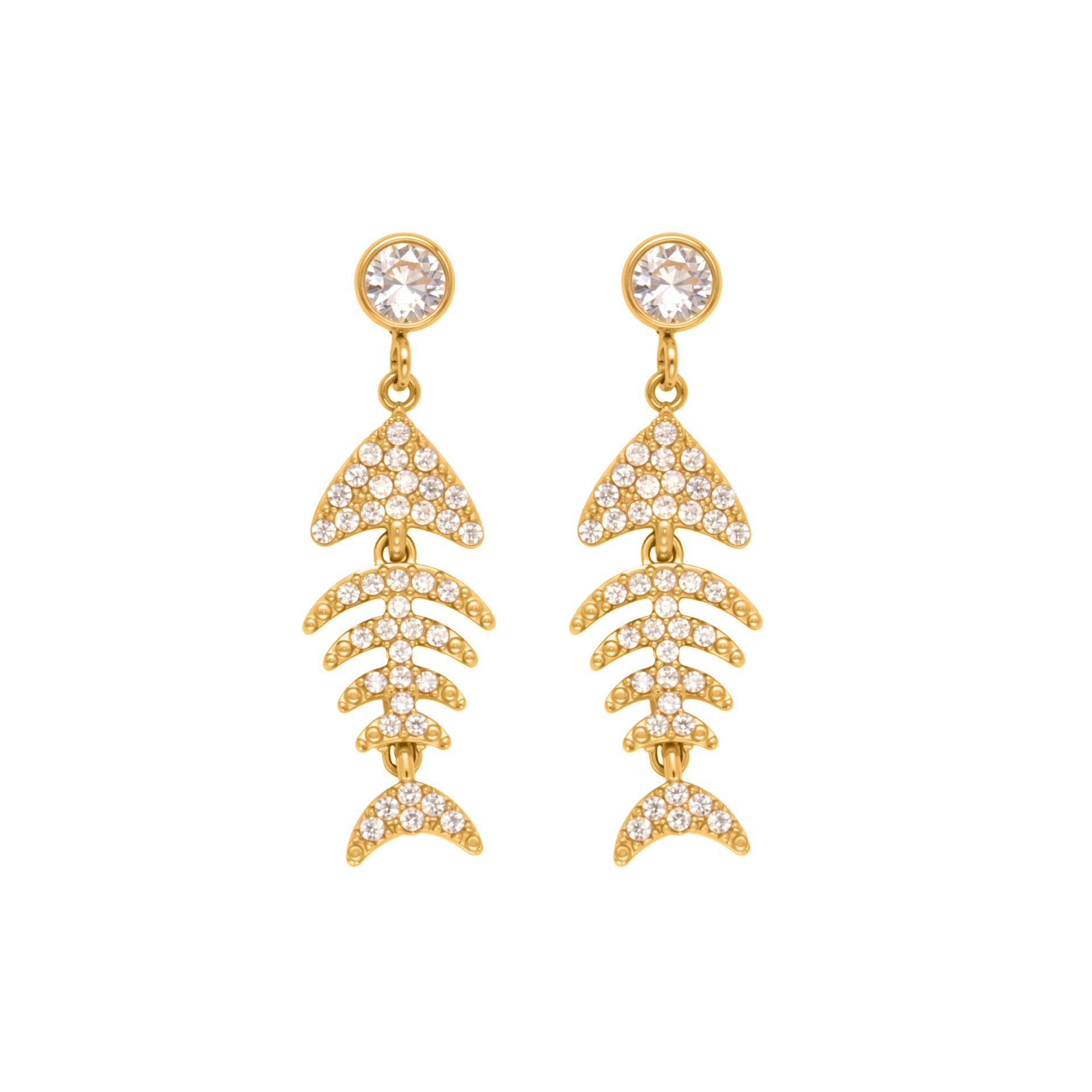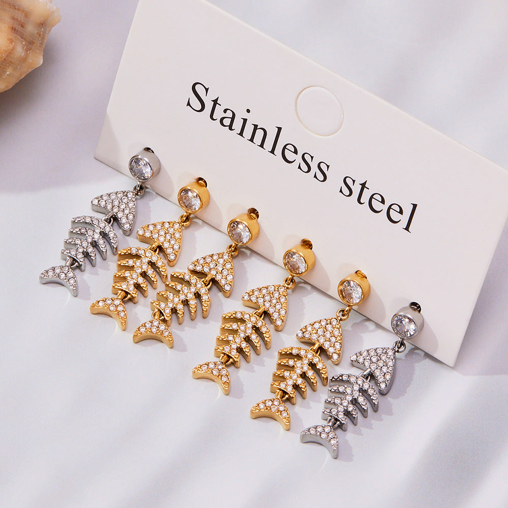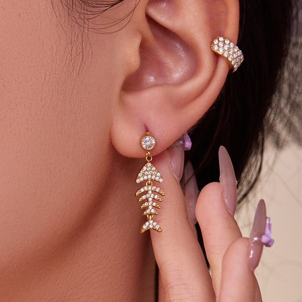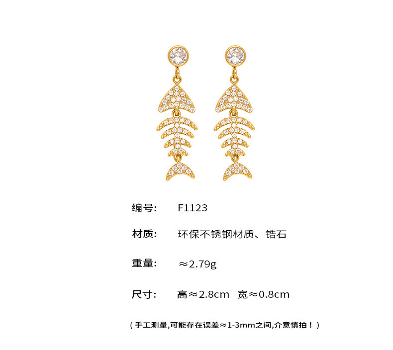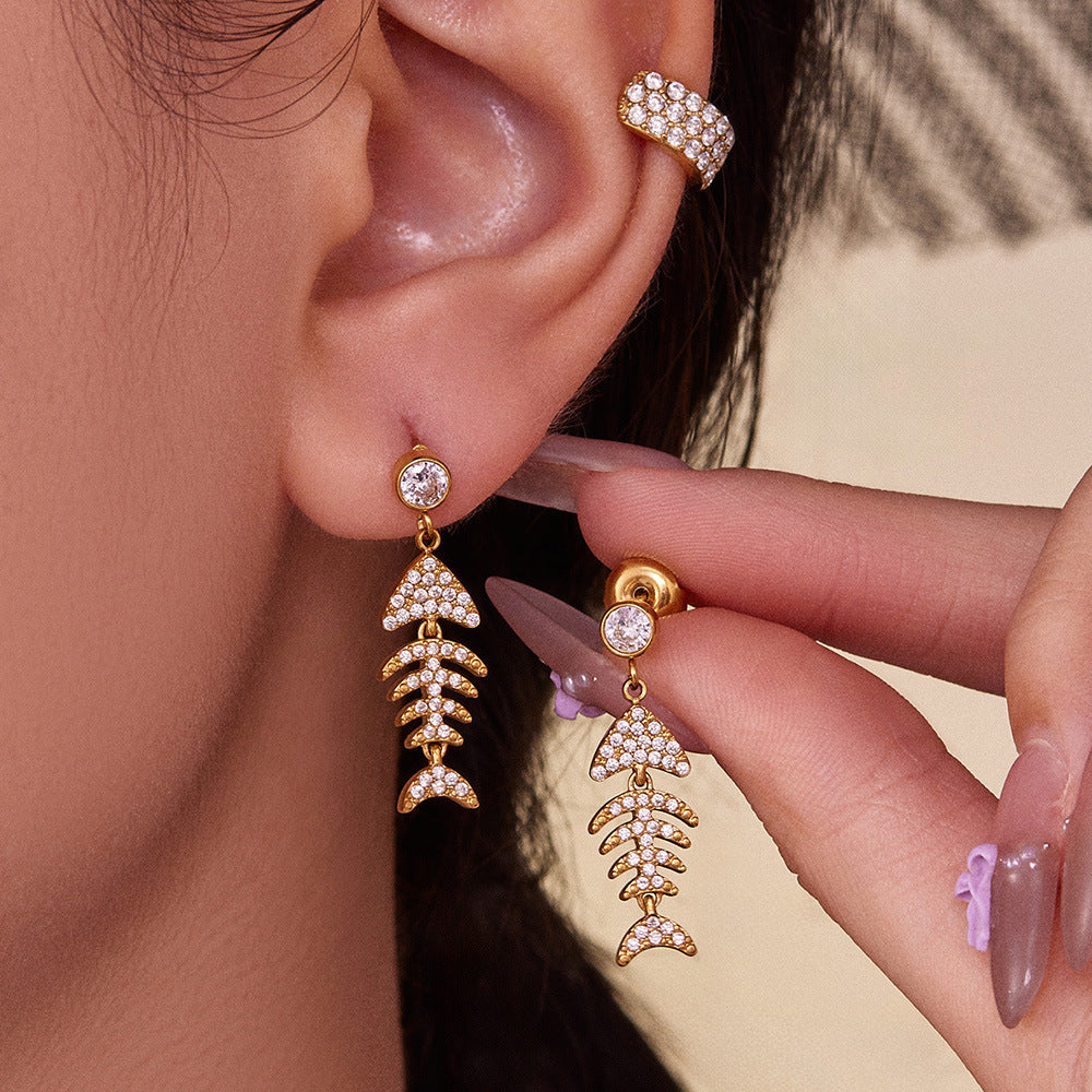 B廠【F1123】跨境新款魚骨造型滿鑽鋯石超閃耳環不鏽鋼鍍18k真金不掉色 25.11-1
