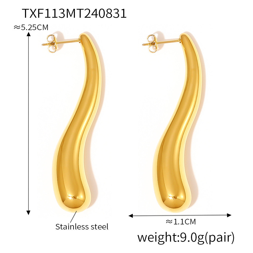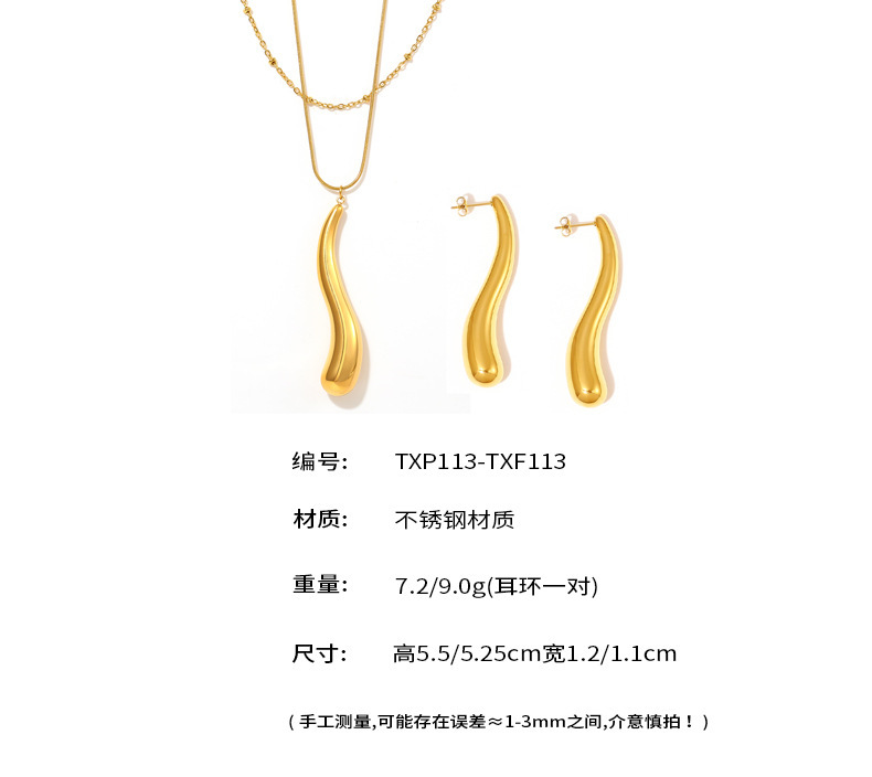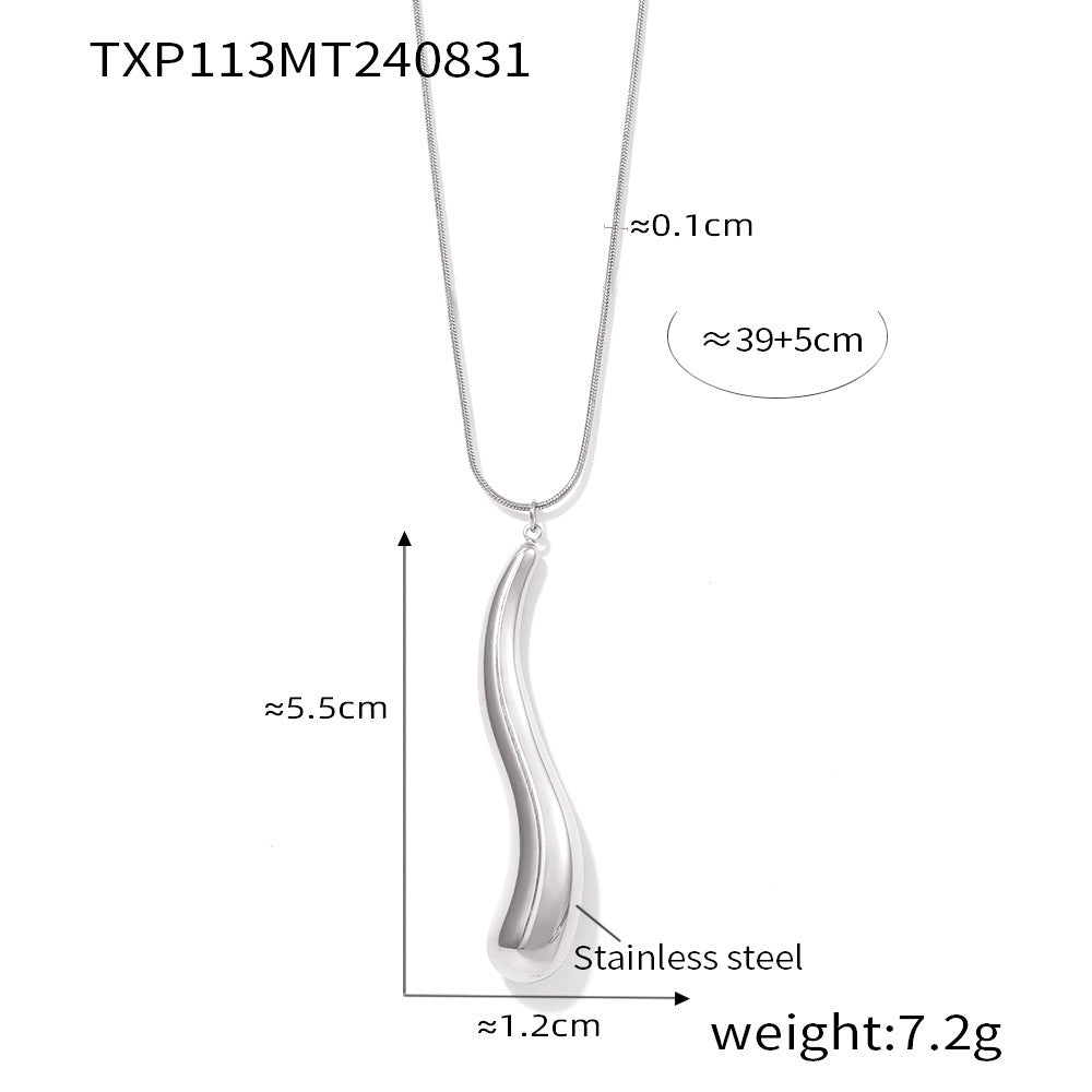 B廠【F113】歐美跨境簡約長條水滴空心吊墜新款項鍊不鏽鋼耳環時尚套裝 24.09-2