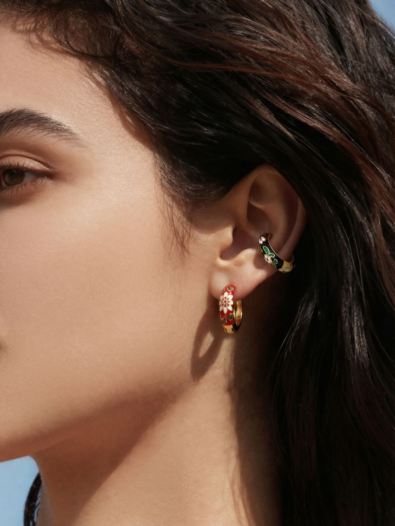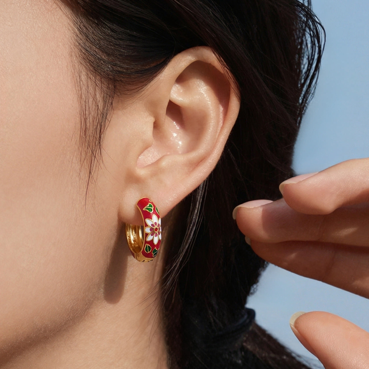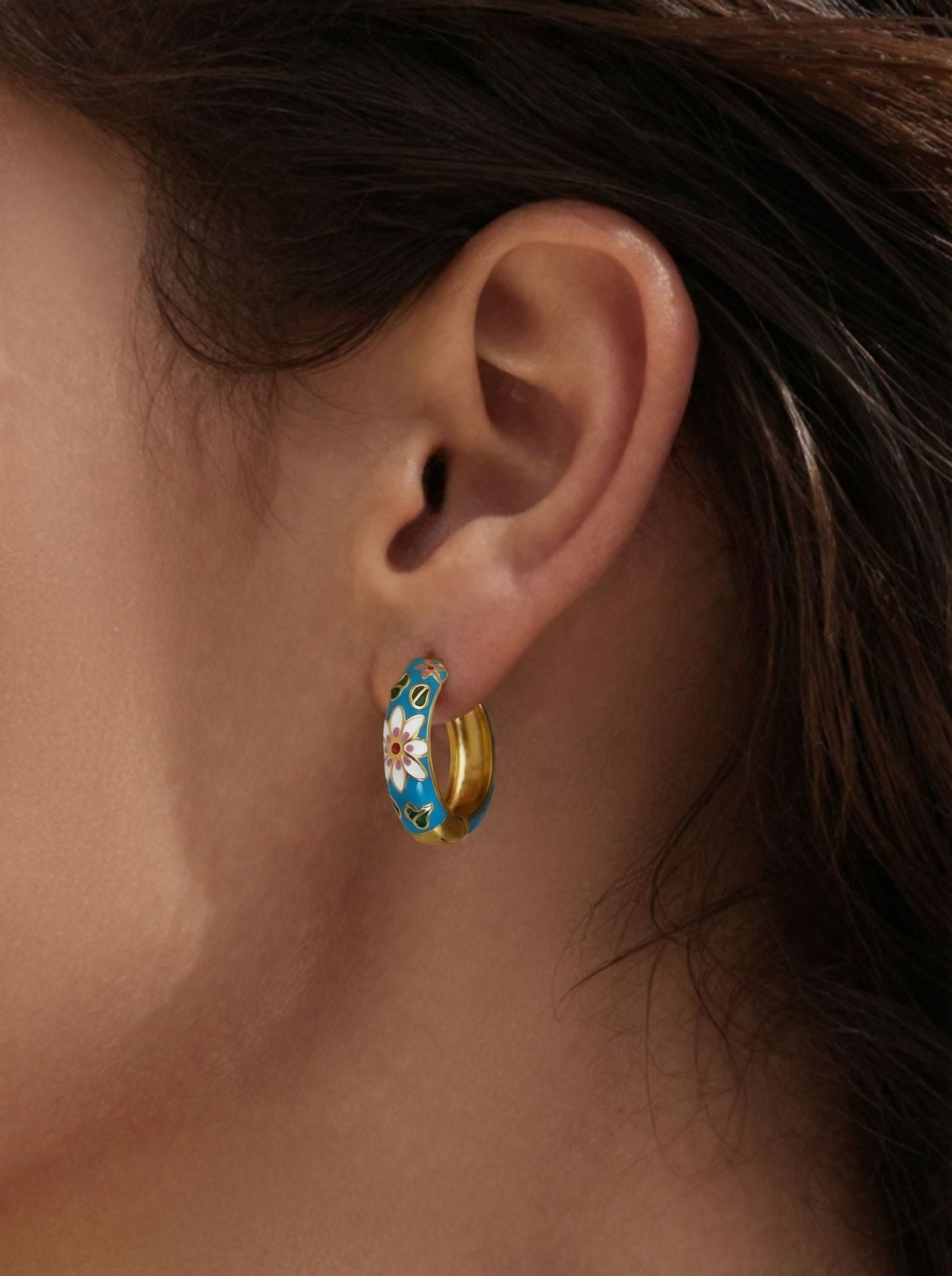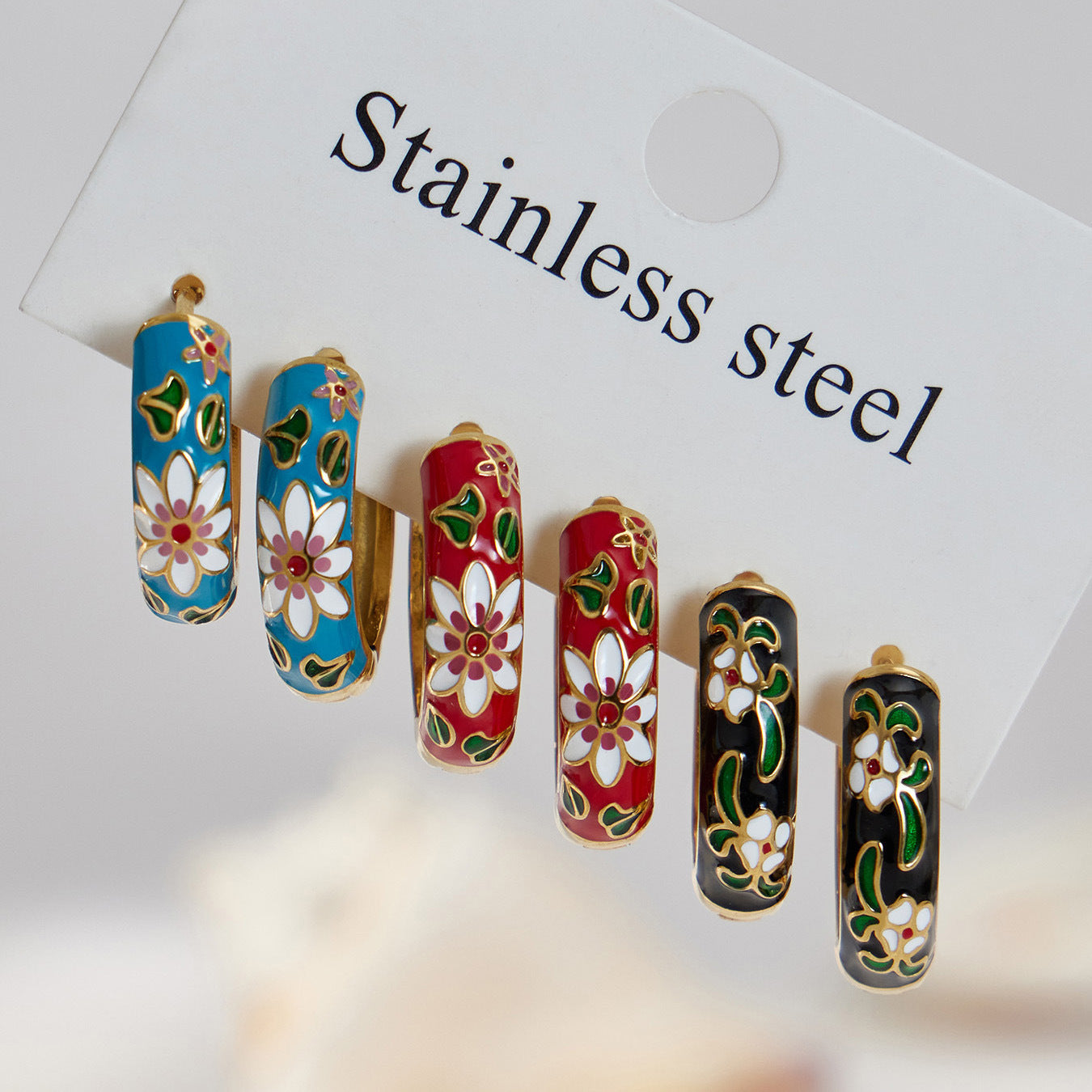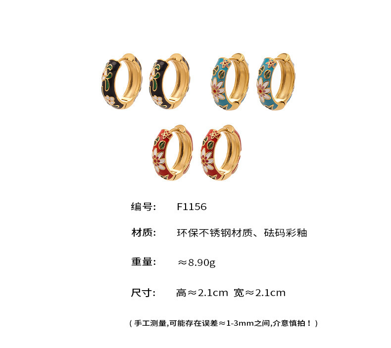 B廠【F1156】新中式琺瑯彩釉印花圓圈耳扣不銹鋼鍍18k真金彩色滴油花朵耳環女 25.12-4