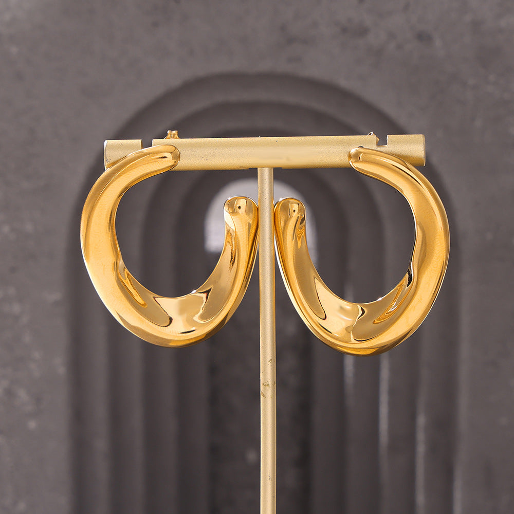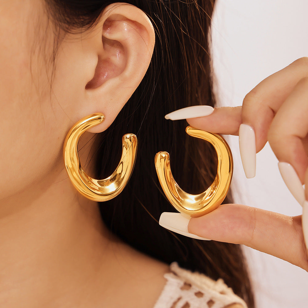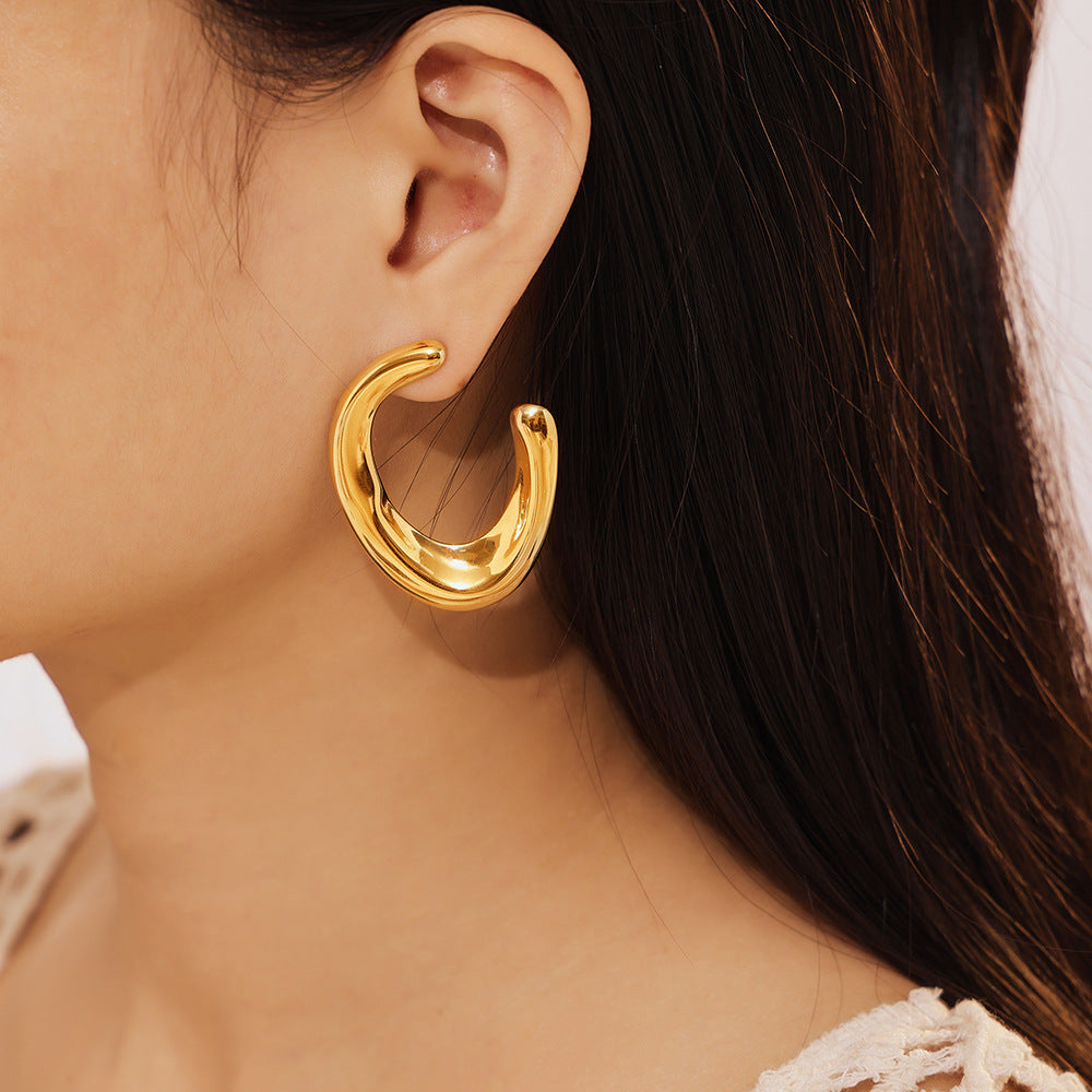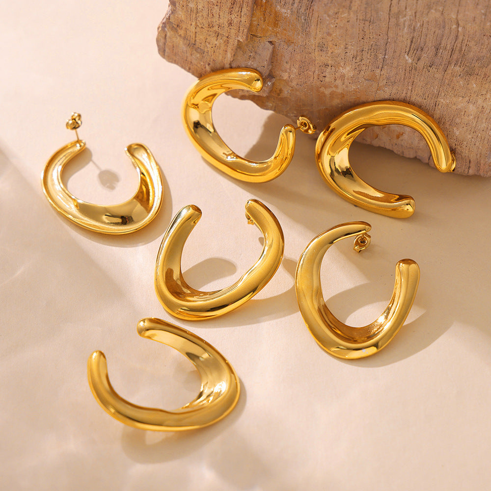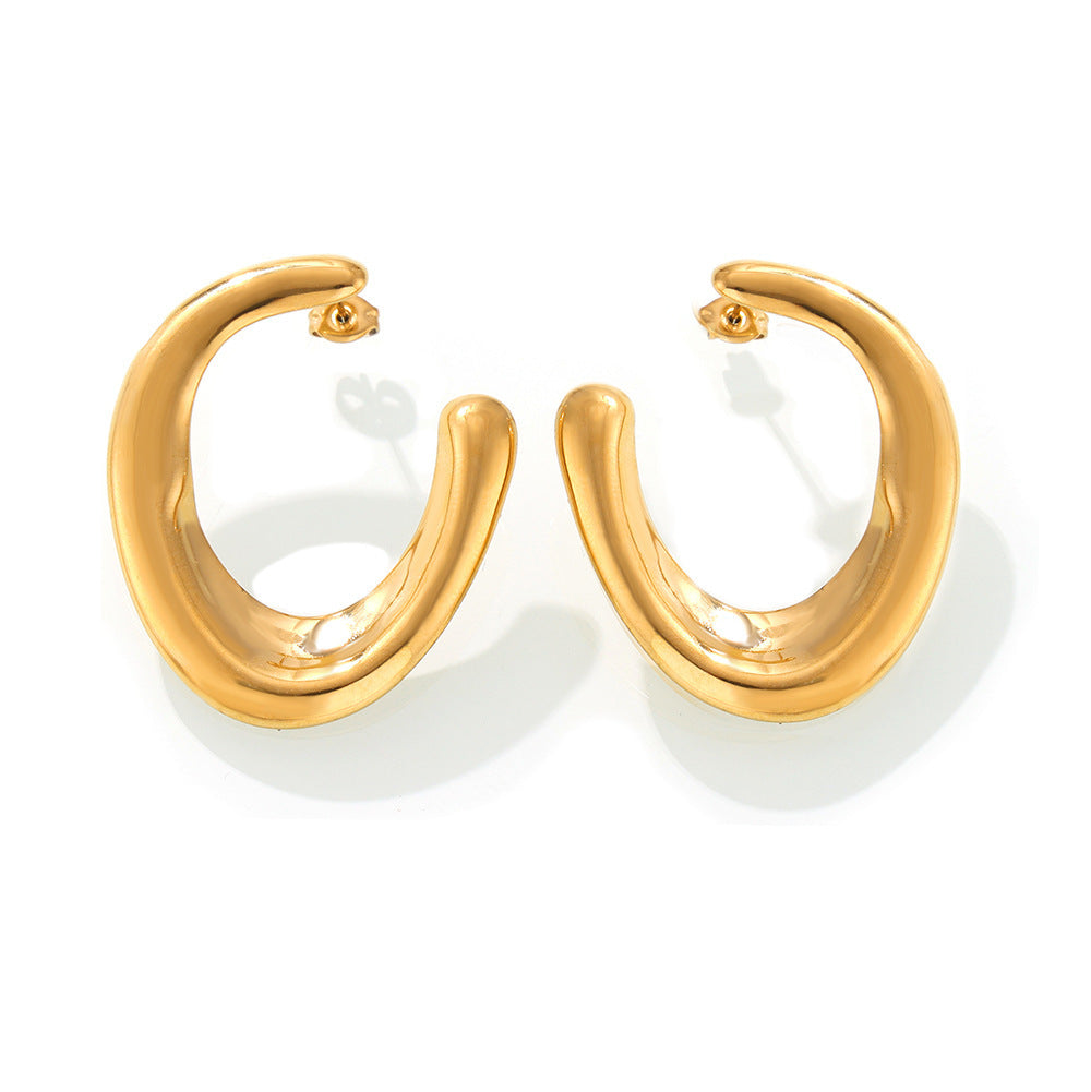 B廠【F1220】跨境熱銷歐美U形耳環鈦鋼鍍18k真金不規則弧面設計簡約潮流耳飾女 24.08-2