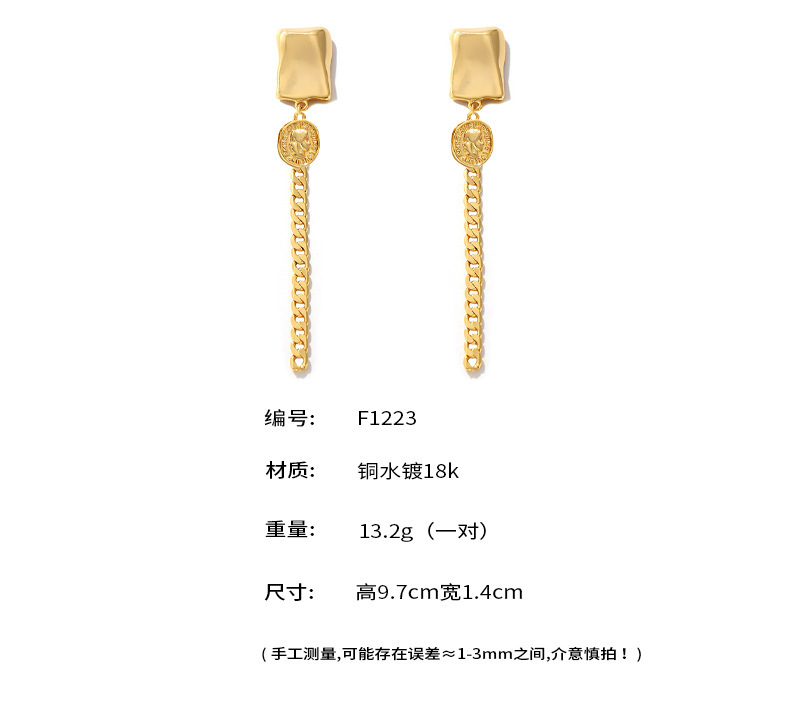 B廠【F1223】亞馬遜熱銷新款幾何人像圓牌鏈條流蘇耳環銅水鍍18k真金氣質耳飾 24.08-2
