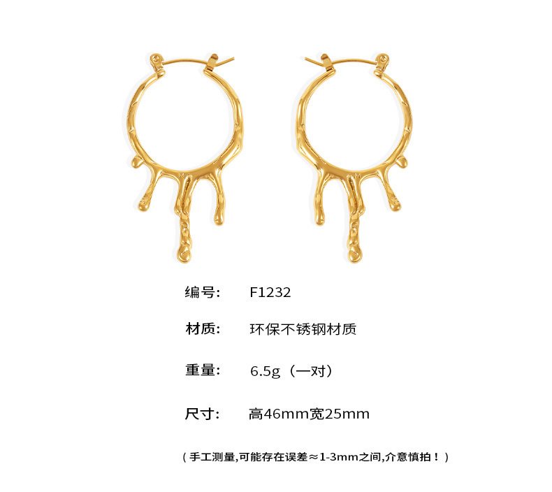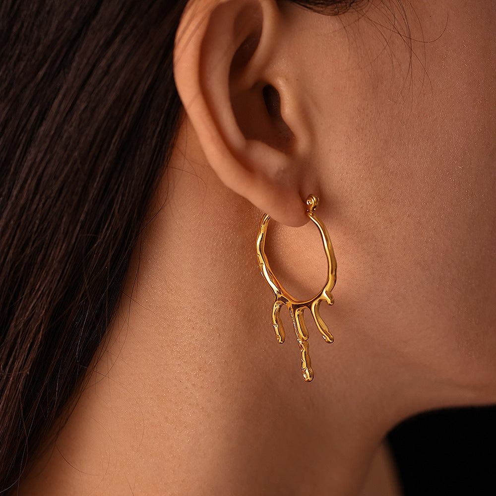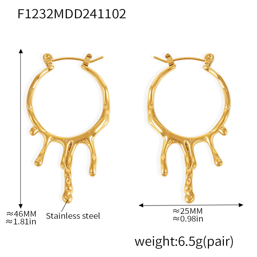 B廠【F1232】 歐美風時尚個性岩溶水滴液態耳環不規則耳圈不鏽鋼鍍18k金 24.11-2