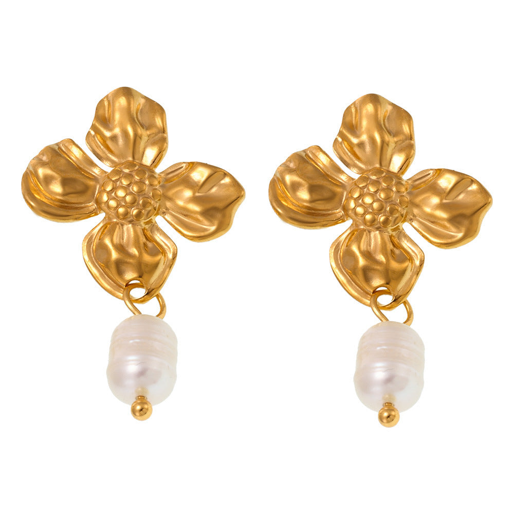 B廠【F1363】花瓣流蘇淡水珍珠耳環耳環歐美氣質輕奢鈦鋼花朵耳環 25.01-4