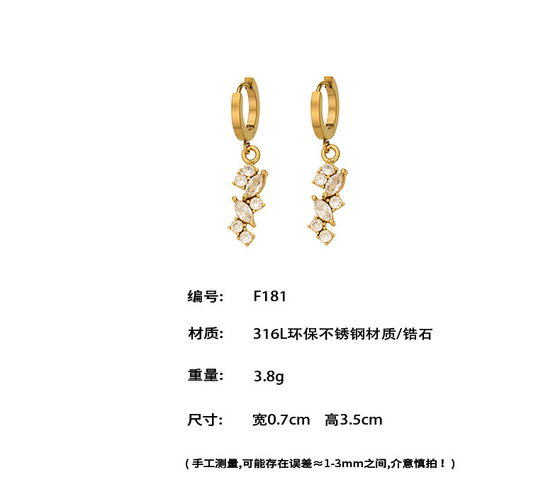 B廠【F1375】歐美輕奢INS風麥穗流蘇鋯石耳環跨境小眾設計感不鏽鋼鍍18k金耳飾 26.04-4