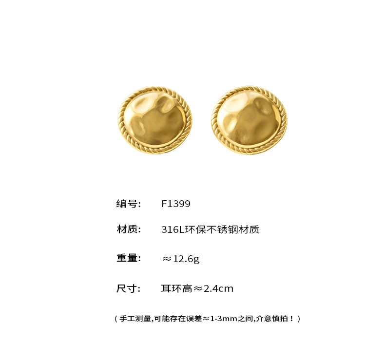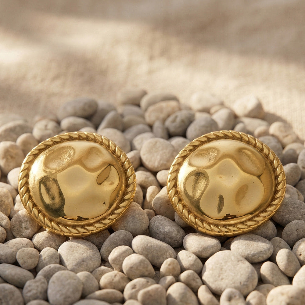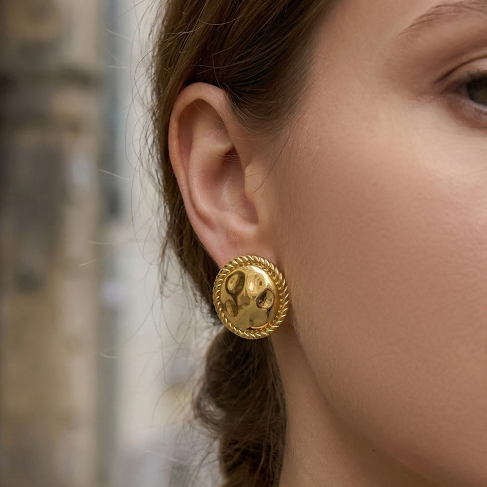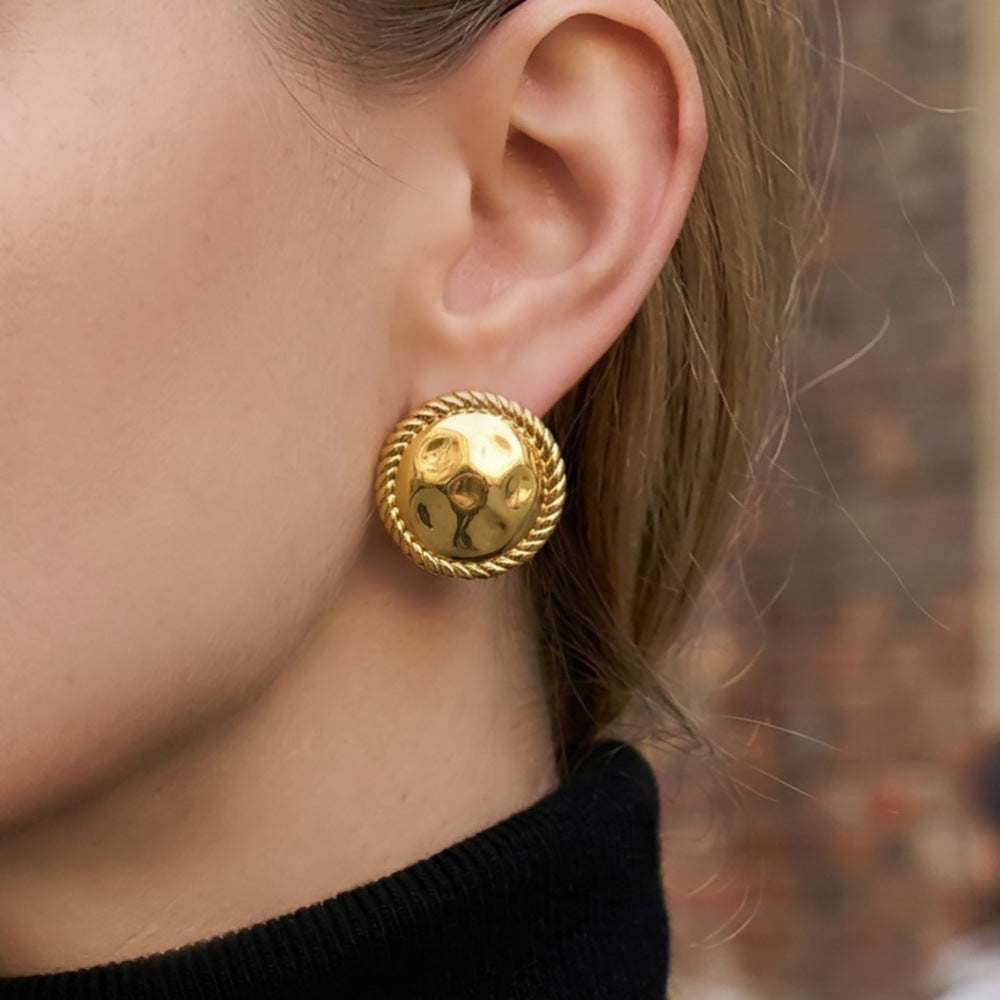 B廠【F1399】美拉德vintage圓形扭紋包邊耳環不銹鋼鍍18k真金耳環跨境時尚耳飾 26.03-3