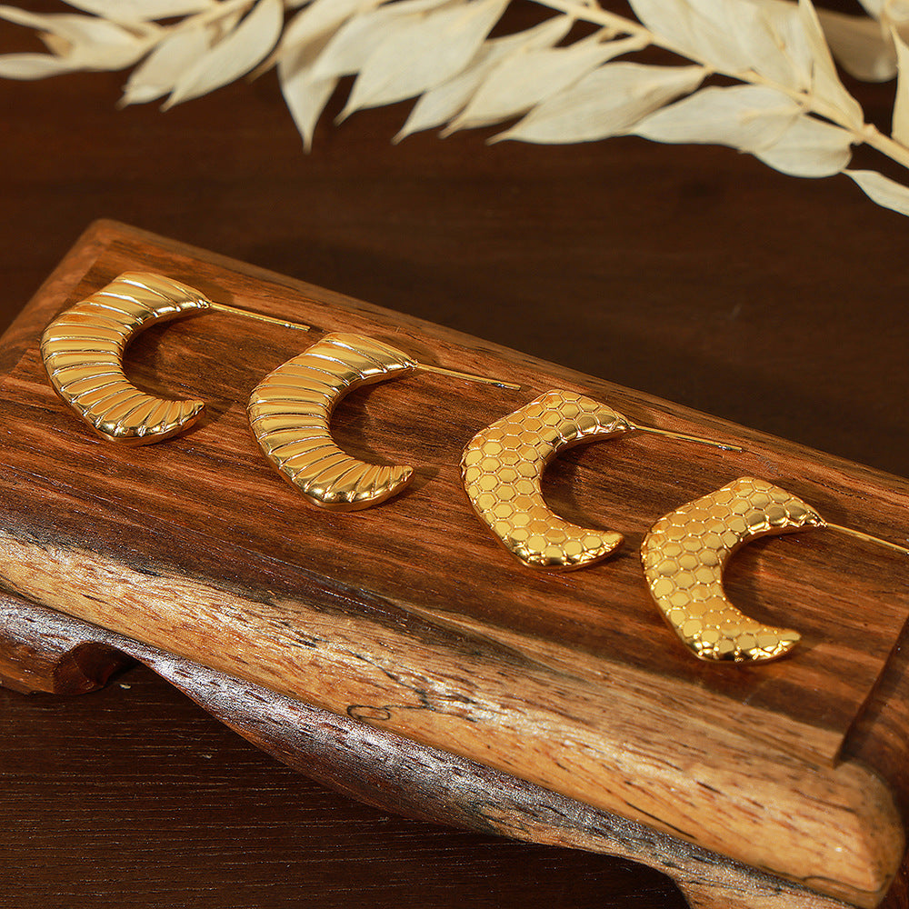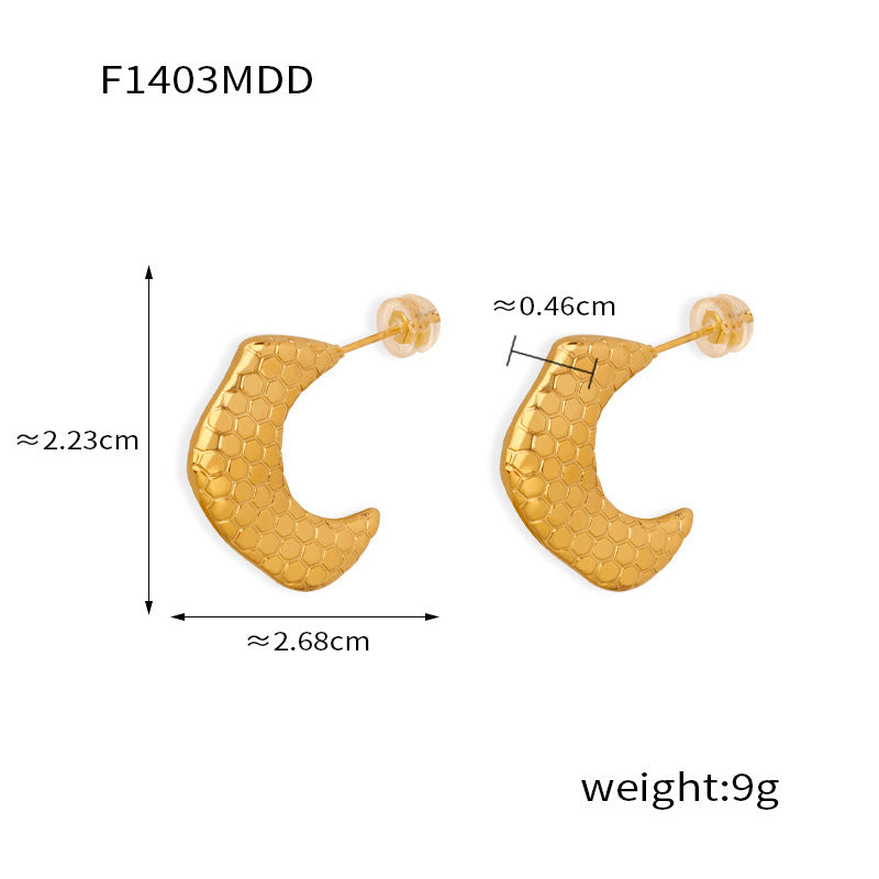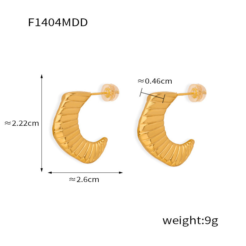B廠【F1401-4】新款法式復古時尚牛角螺紋耳針耳環女士簡約金屬設計鈦鋼鍍金耳扣 24.03-1