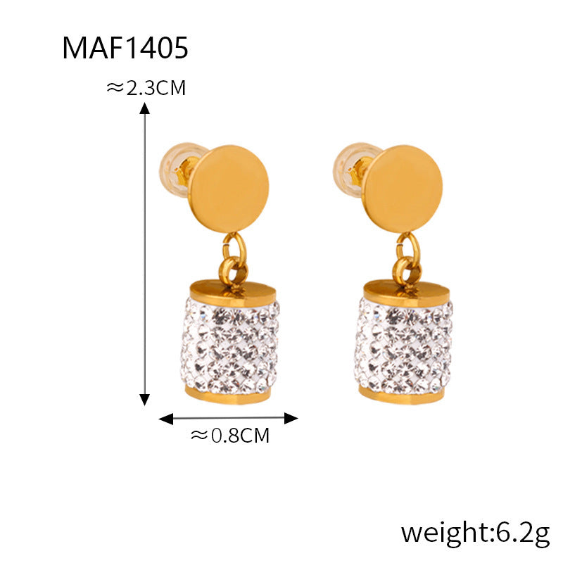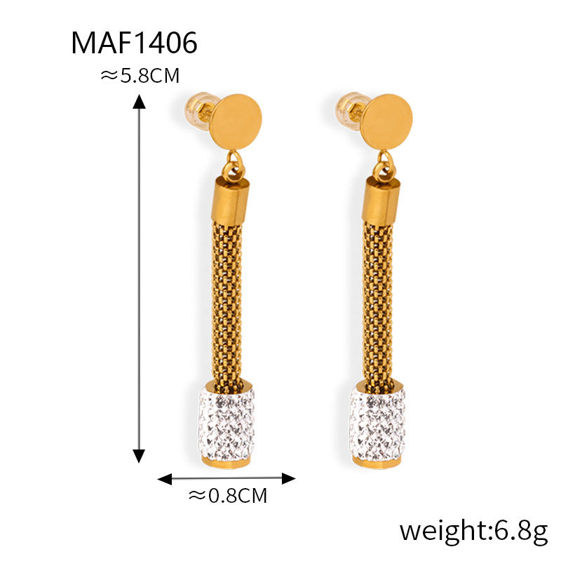 B廠【F1405-7】歐美ins經典超閃滿鑽圓柱形耳環女時尚個性長款流蘇鈦鋼鍍金耳環 24.03-1