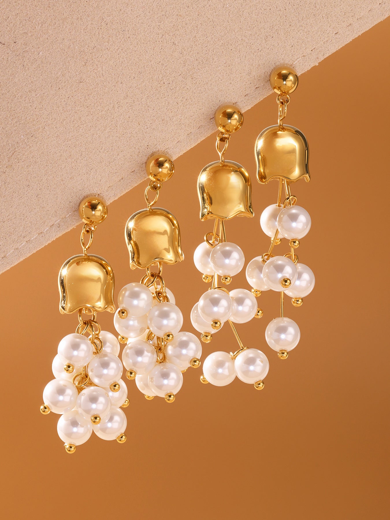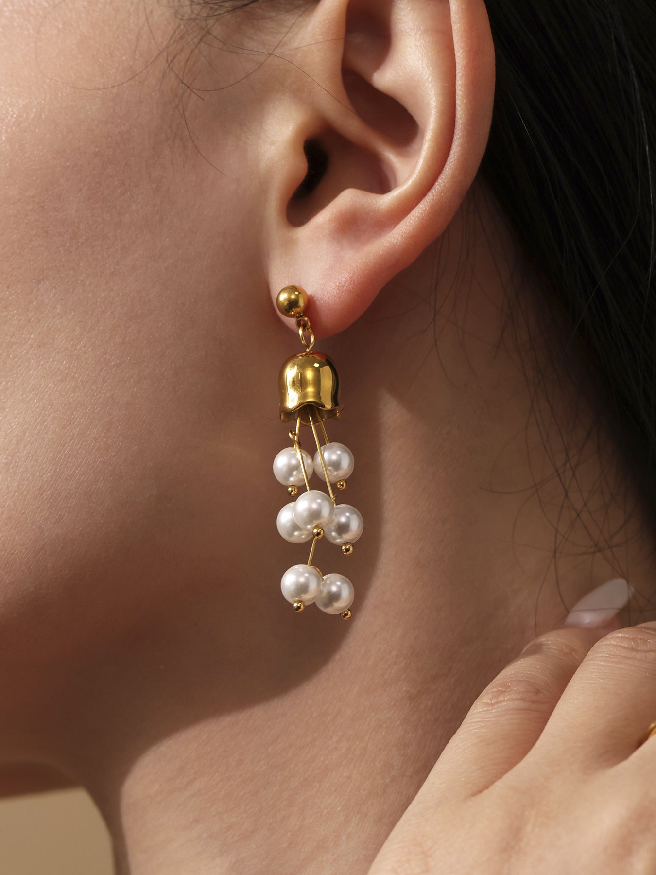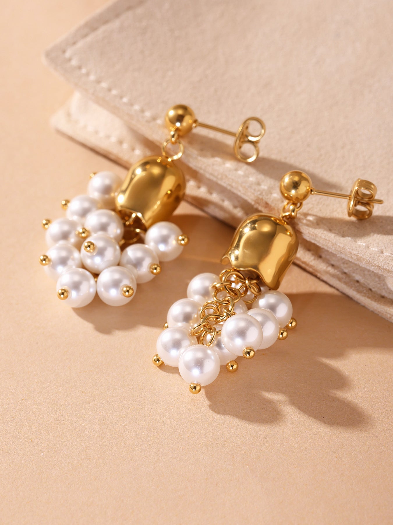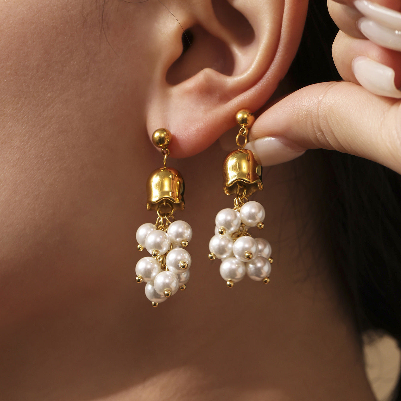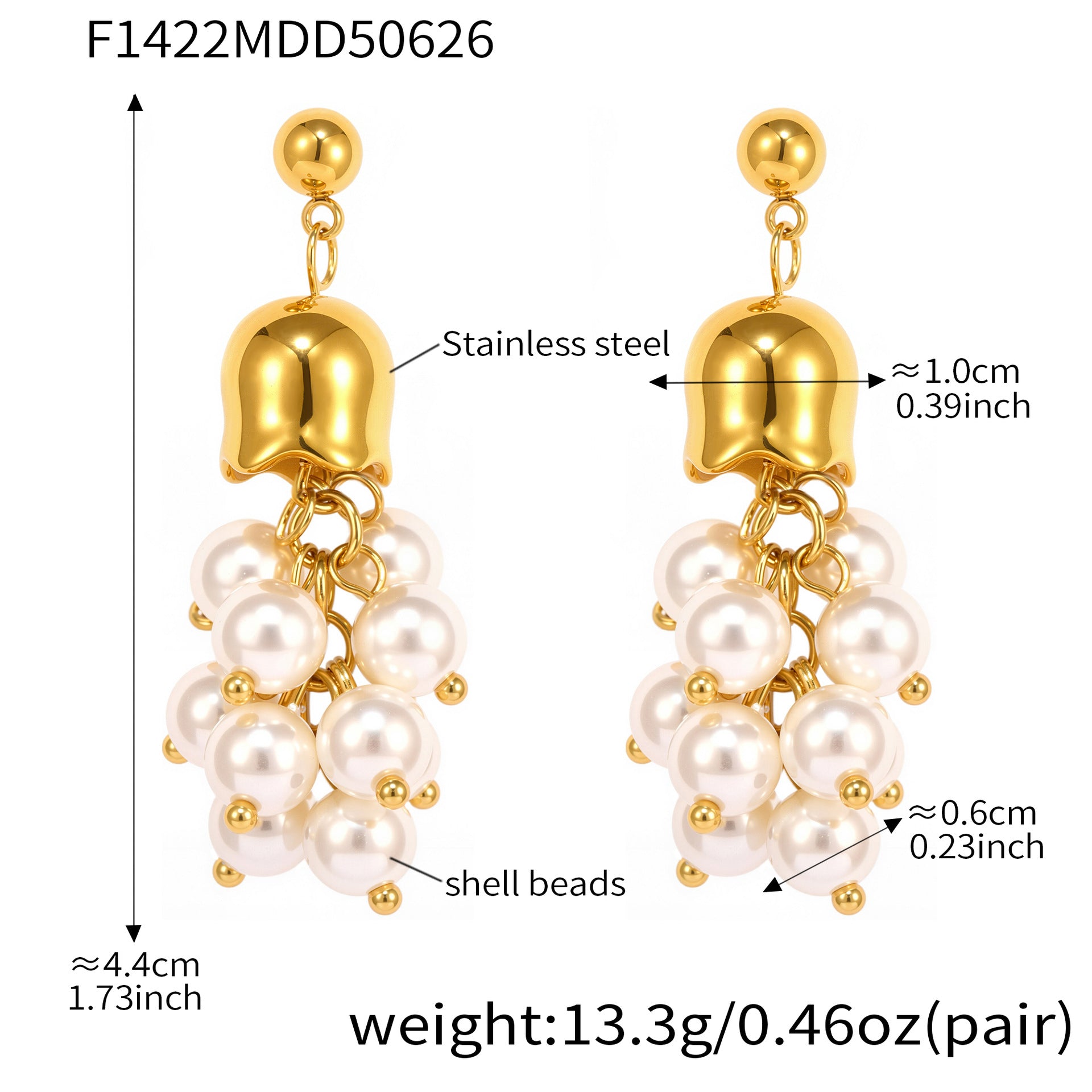 B廠【F1422】天然綠東陵石貝珠流蘇小葡萄造型耳環不鏽鋼18k鍍金耳環女 25.07-1