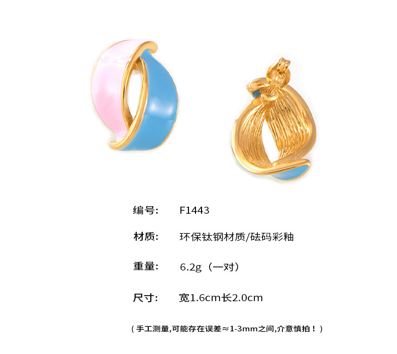 B廠【F1443】韓國滴油鈦鋼耳環簡約設計幾何立體撞色葉子耳環法式復古莫蘭迪色 24.05-5