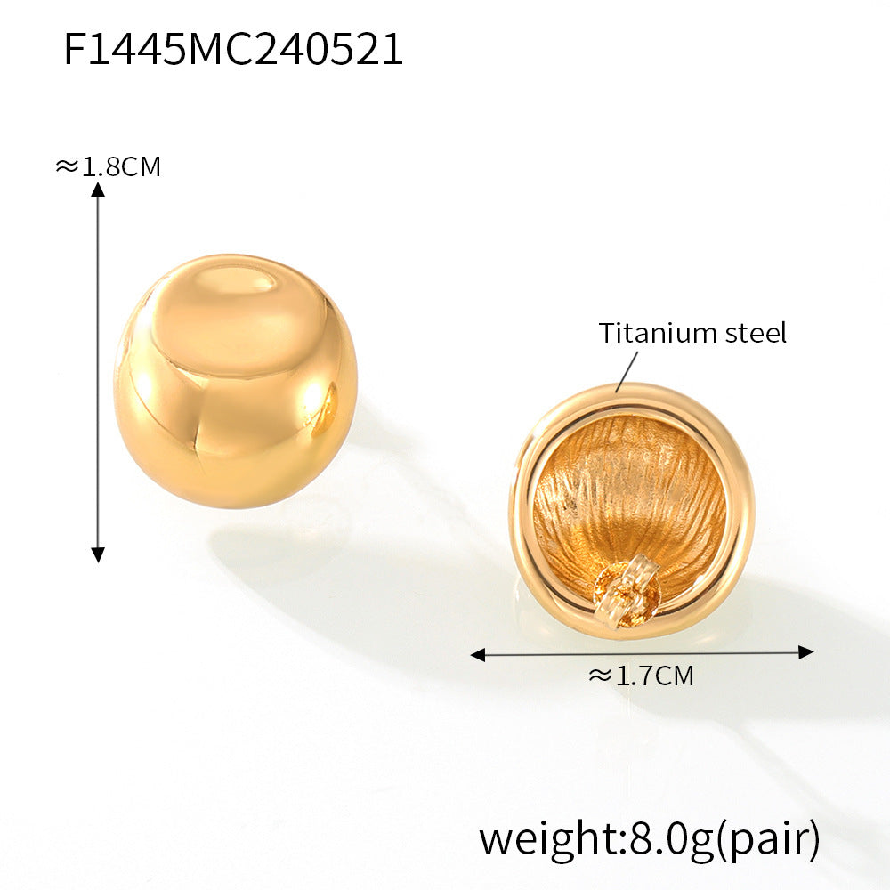 B廠【F1445】歐美不規則光面圓形耳環女ins冷淡風簡約百搭耳環時尚鈦鋼耳飾女 24.05-5