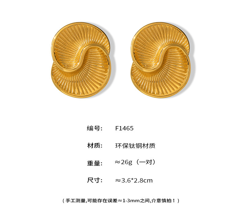 B廠【F1465】ins風歐美鈦鋼鍍18k金水滴紋理螺旋耳環網紅同款不對稱保色耳環女 24.06-1