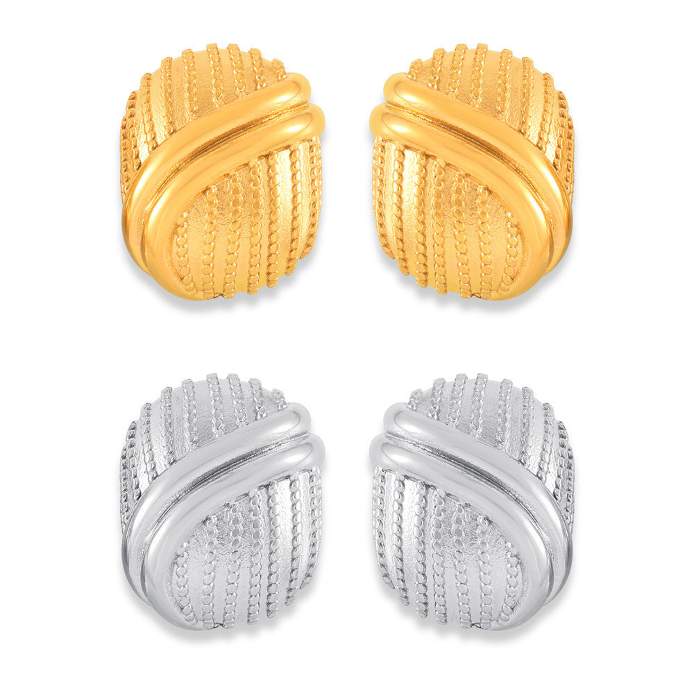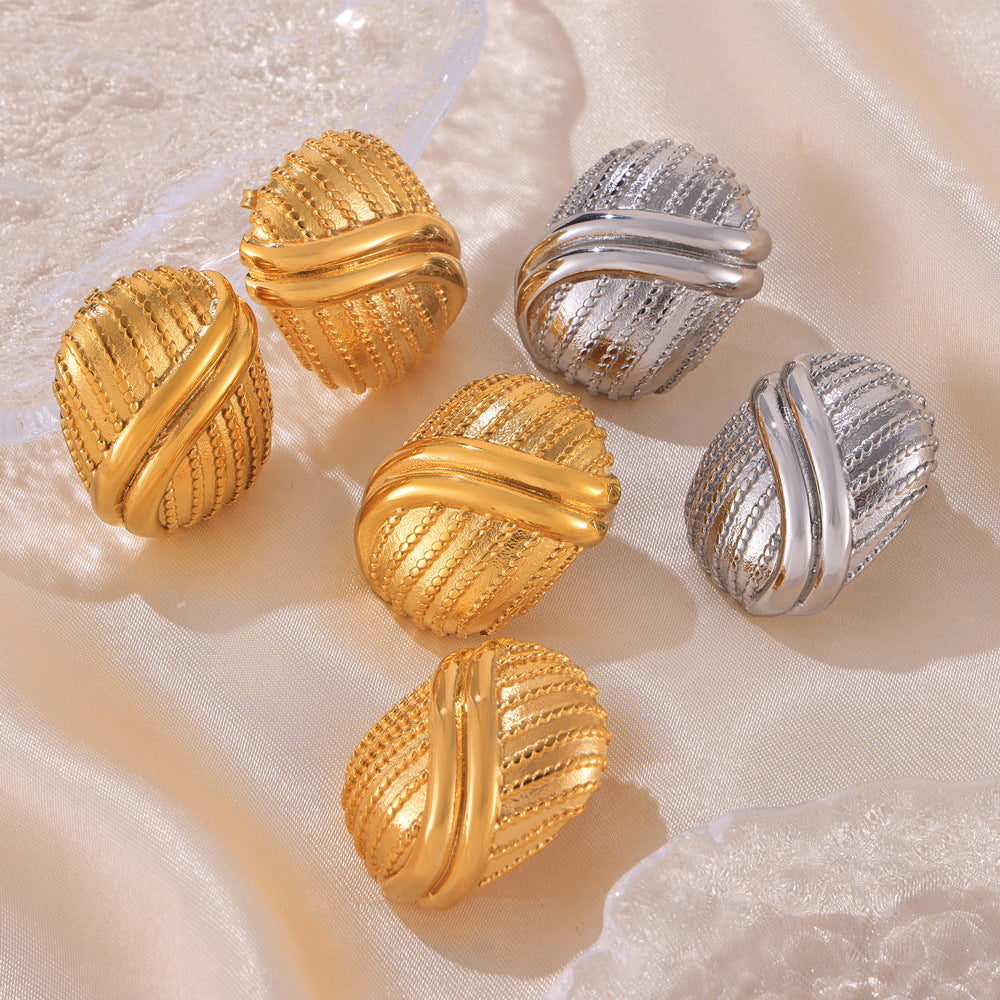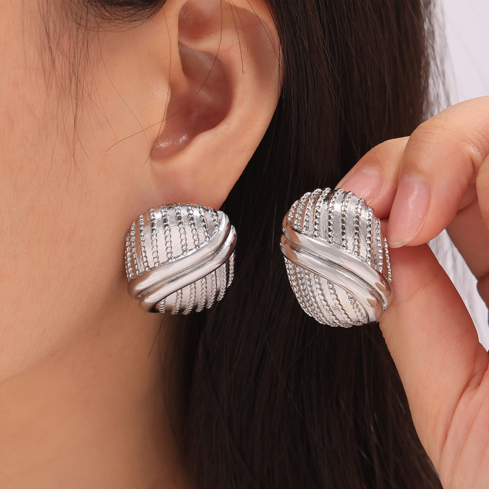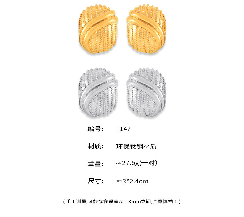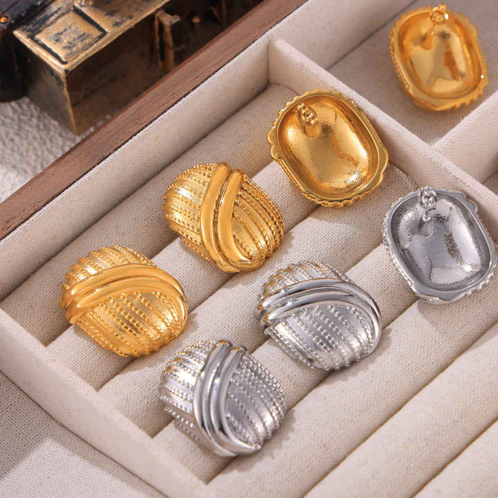 B廠【F147】時尚輕奢簡約個性多層線條拼接設計感耳環幾何橢圓形鈦鋼鍍金耳飾 24.07-1