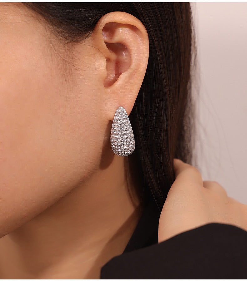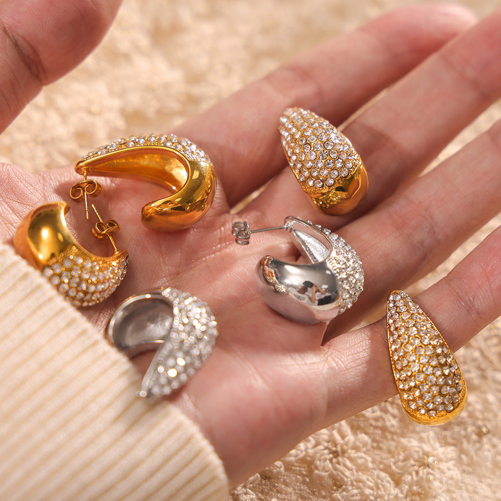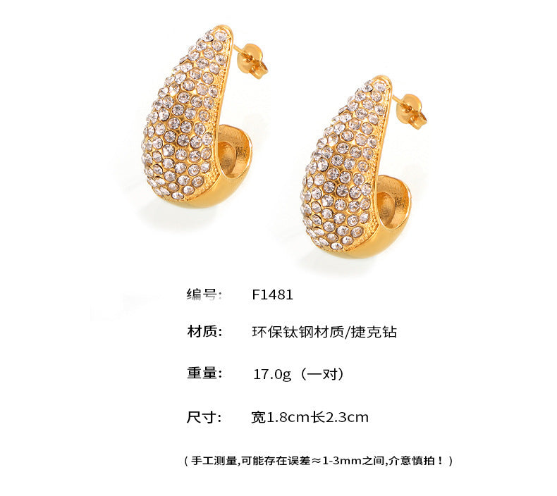 B廠【F1481】歐美熱賣款水滴形鑲鑽耳環個性氣質時尚輕奢鈦鋼鍍18k金耳飾 24.06-3