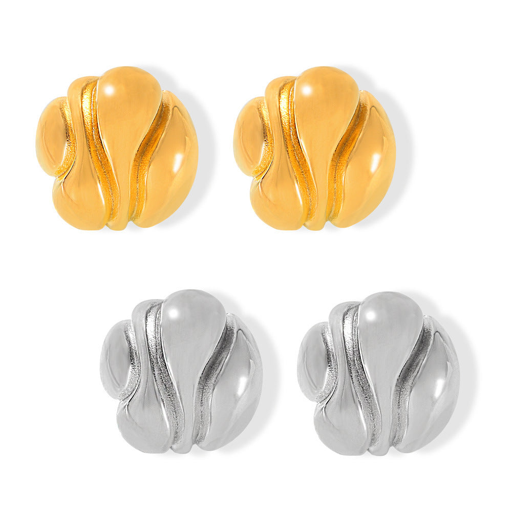 B廠【F1489】歐美誇張幾何不規則圓耳環凹凸紋理鍍18k金耳環INS風鈦鋼保色耳環 24.06-3