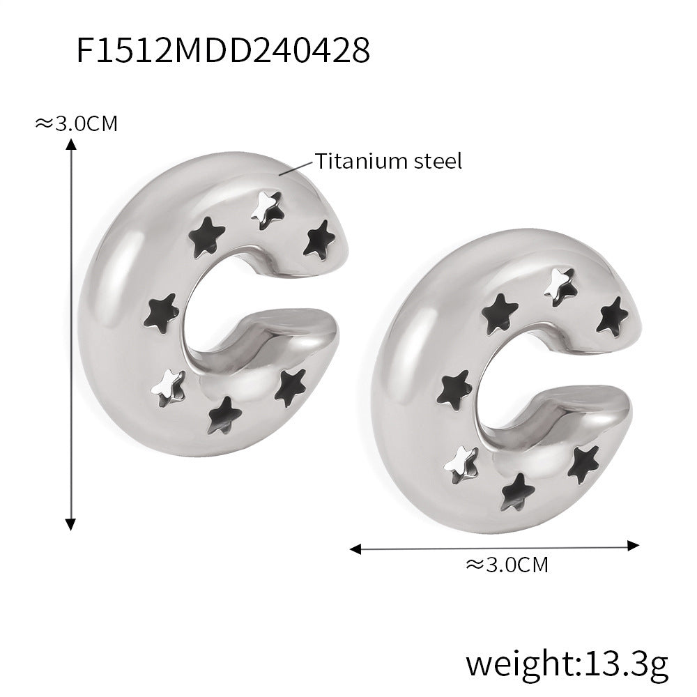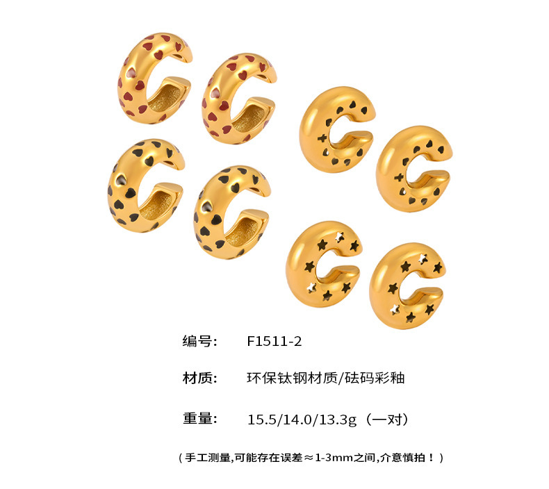 B廠【F1511-2】新款愛心鏤空C型空心耳夾鈦鋼鍍18K金滴油光面設計耳環百搭飾品女 24.05-1
