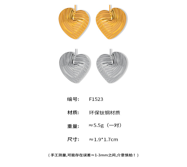 B廠【F1523】歐美INS風個性百搭18k金鈦鋼耳環光面波紋條紋愛心輕奢耳環耳環耳飾女 24.05-5
