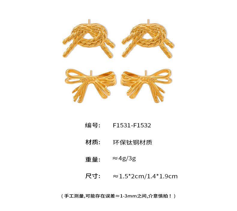 B廠【F1531-2】韓版個性輕奢蝴蝶結耳環潮ins復古冷淡風簡約氣質鈦鋼耳環飾品女 24.05-2