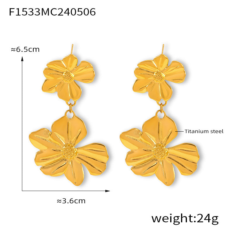 B廠【F1533】歐美跨境熱賣花朵拼接耳墜鈦鋼鍍18K金耳環時尚個性誇張耳環 24.05-2