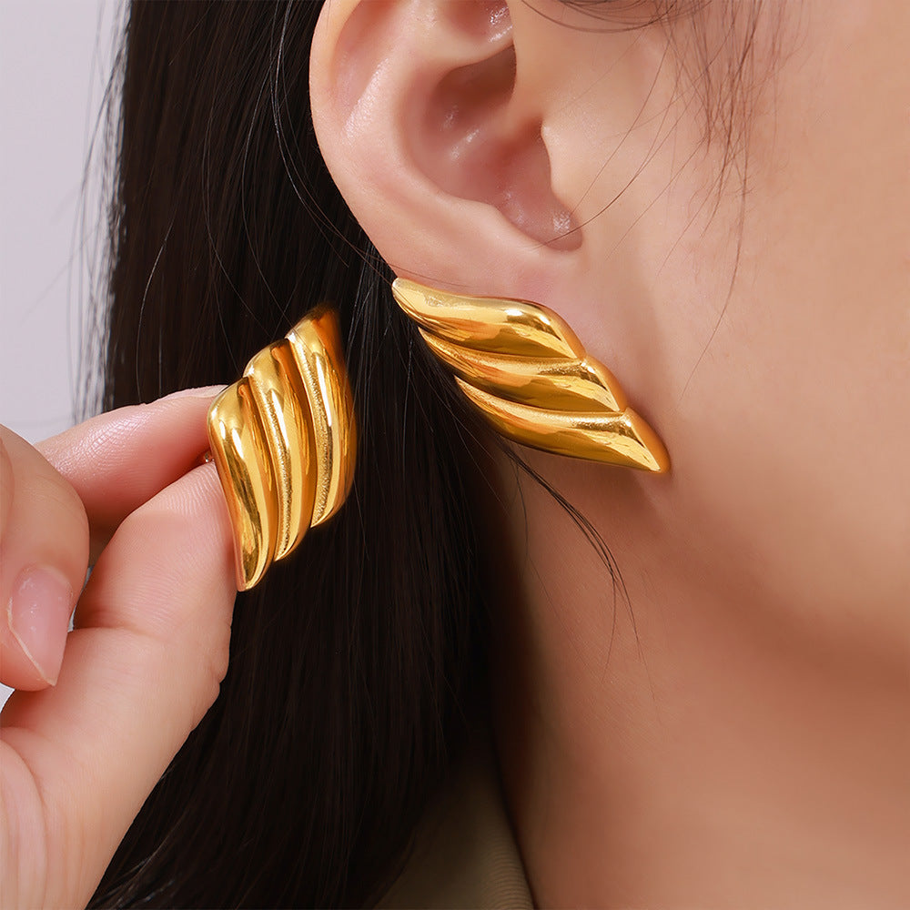 B廠【F1568】歐美跨境熱銷翅膀造型耳環幾何方形鈦鋼鍍18k金輕奢時尚潮流耳飾 24.07-4