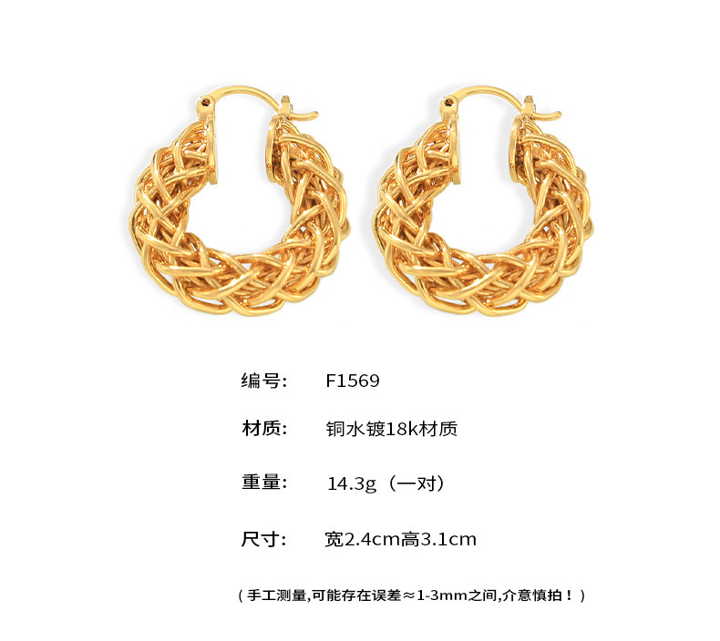B廠【F1569】跨國歐美風麻花編織鏤空幾何耳環個性時尚設計銅材質鍍18k金耳飾 24.07-4