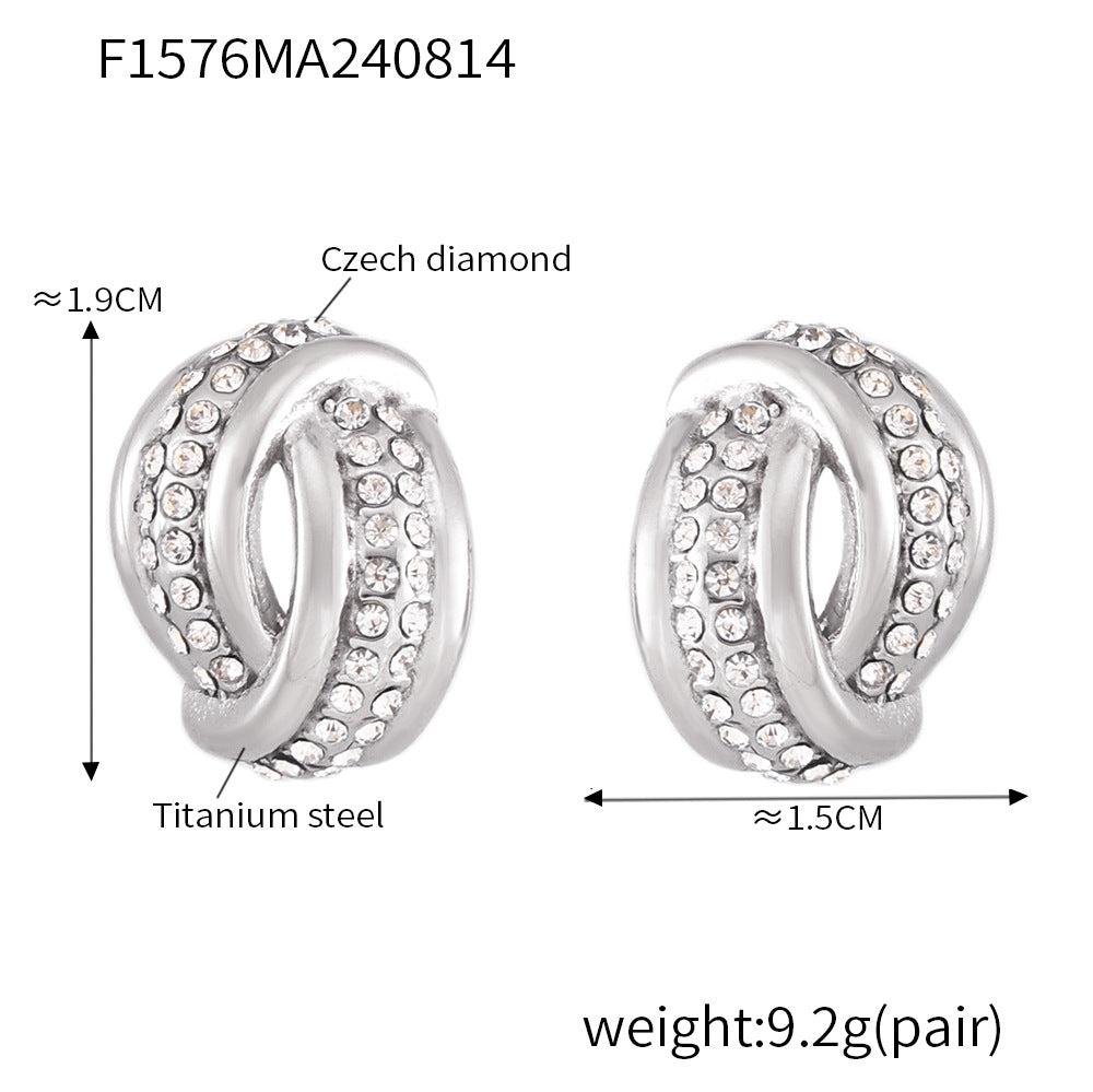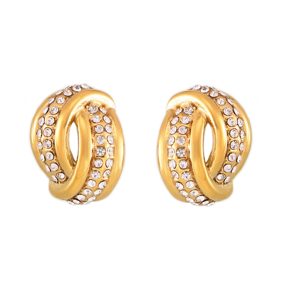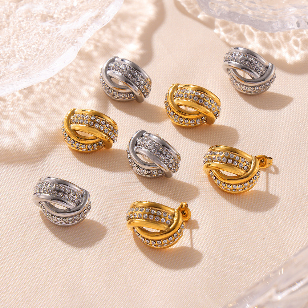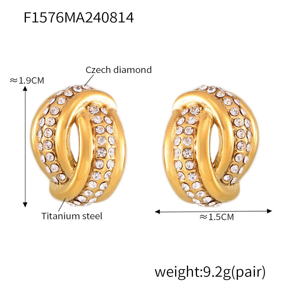 B廠【F1576】跨境歐美扭曲鏤空鑲鑽耳釘ins風復古設計鈦鋼鍍18k真金耳飾 24.08-3