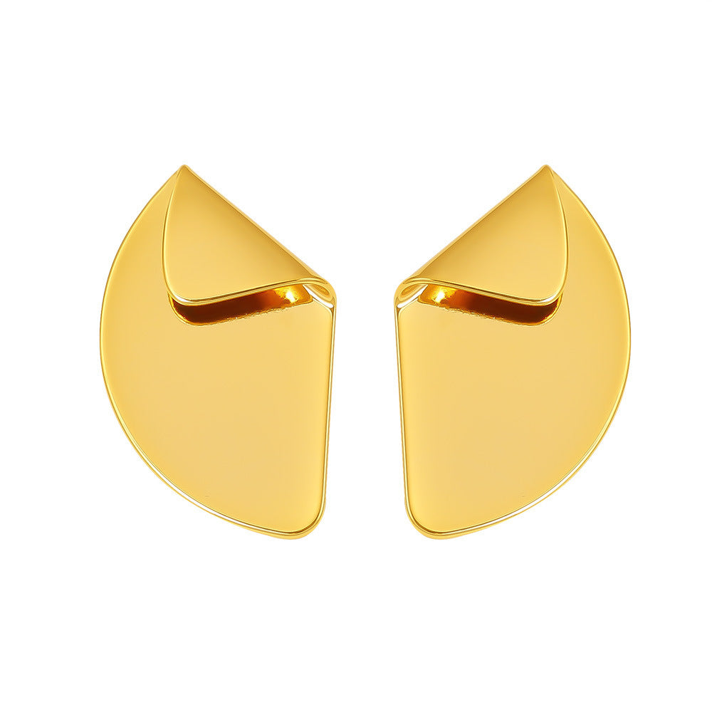 B廠【F1586】歐美風金色不規則彎曲幾何扇形耳環氣質小眾設計銅材質鍍18k真金 24.08-4