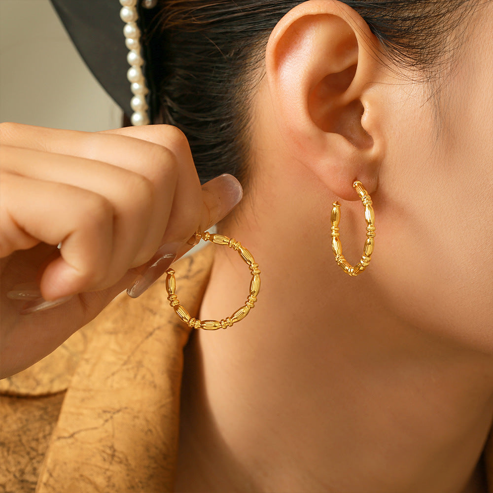 B廠【F1596】歐美風不規則素圈C型耳環氣質復古設計銅材質鍍18k真金耳環品 24.08-4