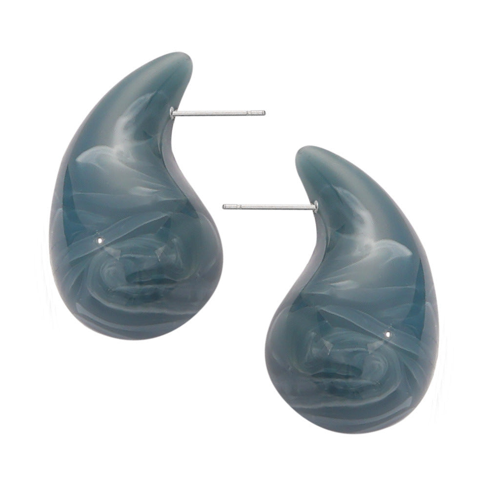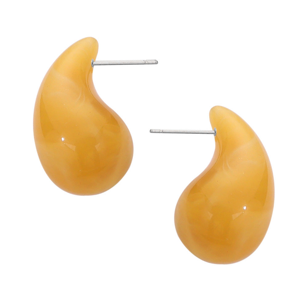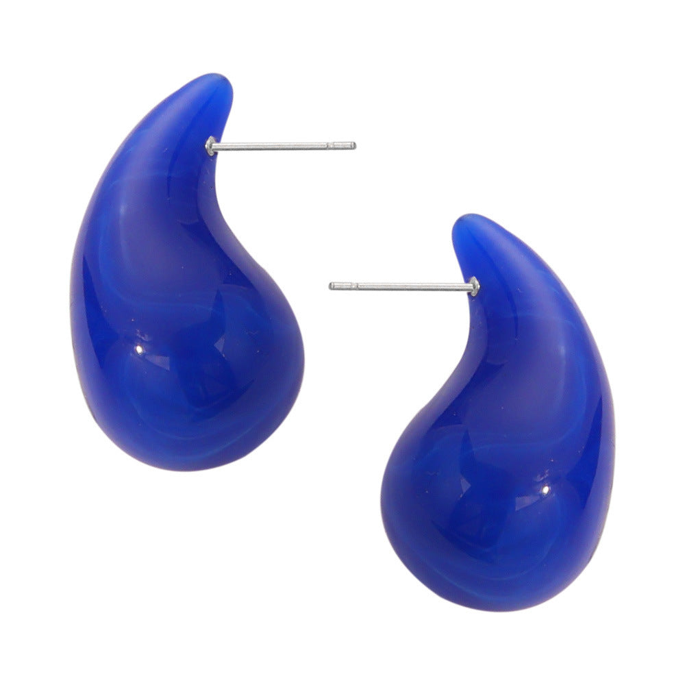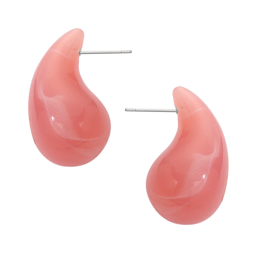 B廠【F160】歐美熱銷鈦鋼樹脂水滴幾何耳環時尚個性簡約設計彩虹色耳飾 24.03-3