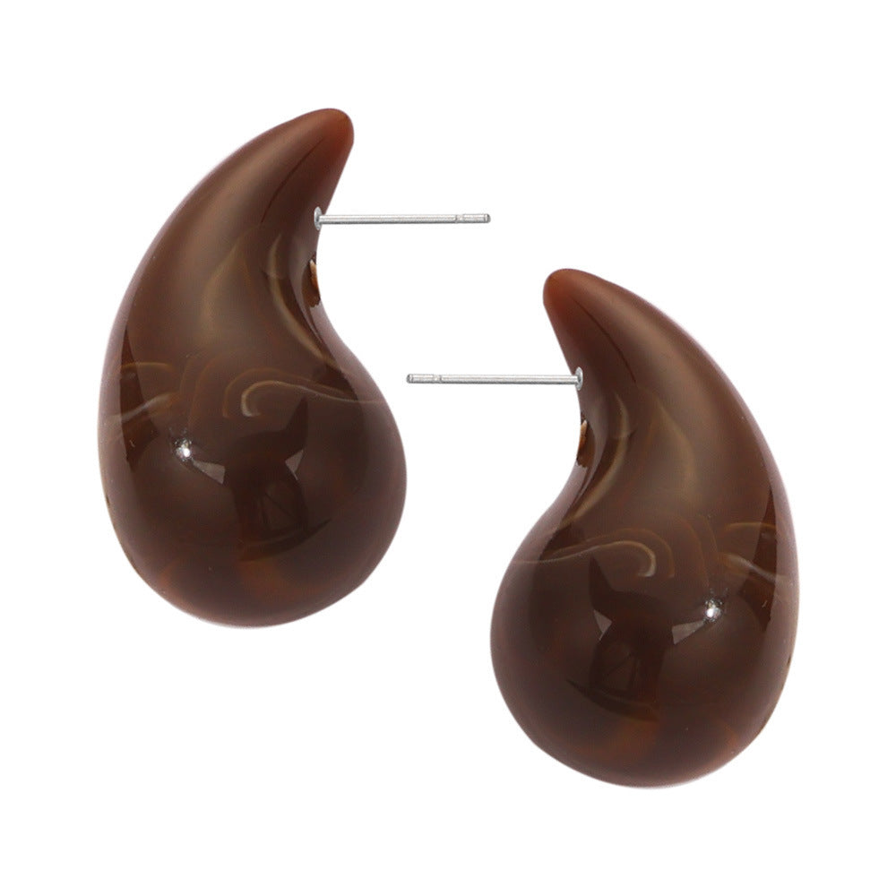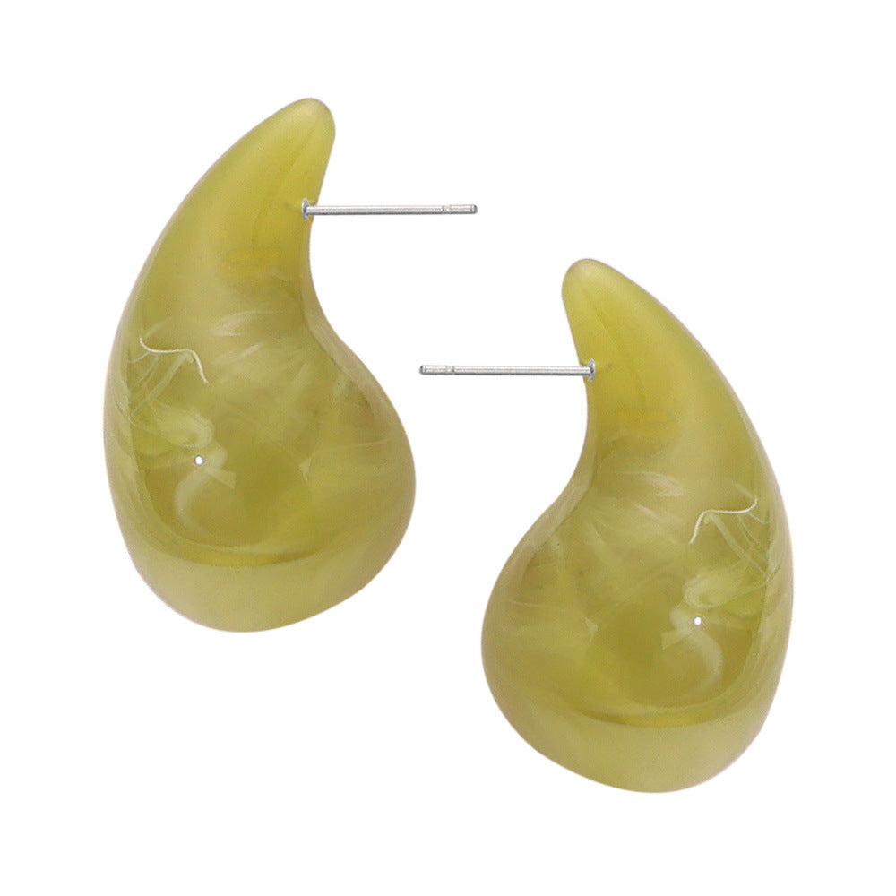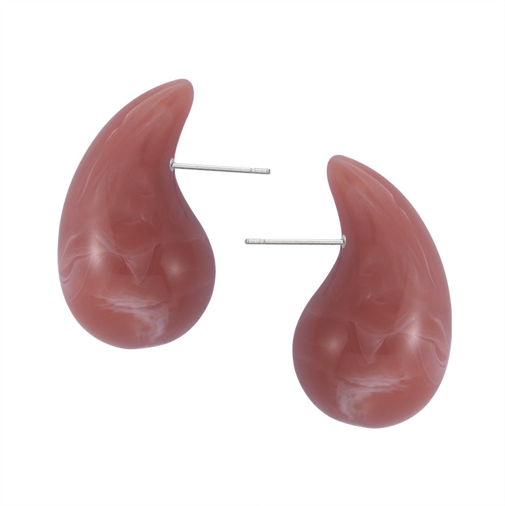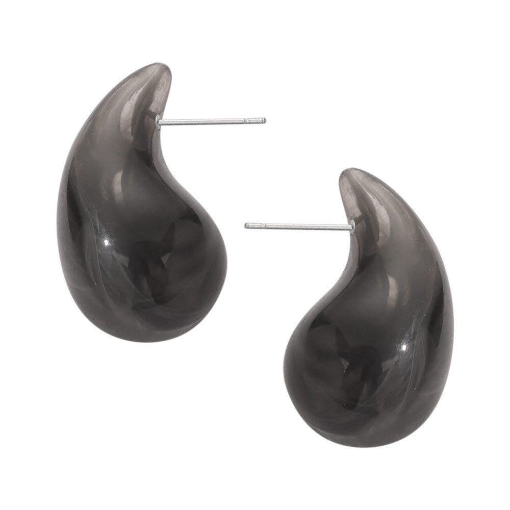 B廠【F160】歐美熱銷鈦鋼樹脂水滴幾何耳環時尚個性簡約設計彩虹色耳飾 24.03-3