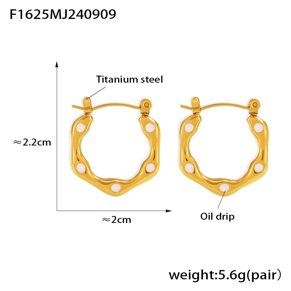 B廠【F1625】歐美氣質耳圈 幾何U形滴油耳環鈦鋼18K Gold Plated PVD耳飾 24.09-3