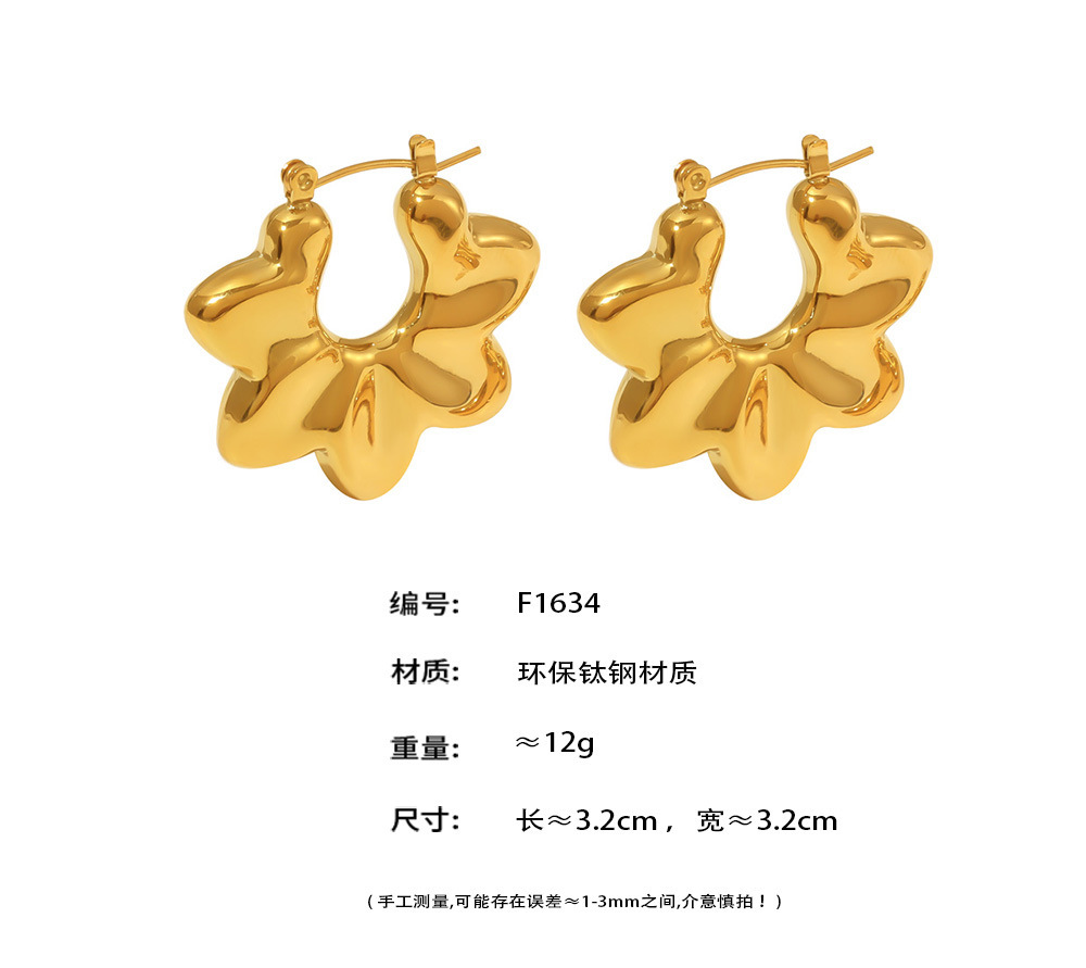 B廠【F1632】跨國時尚新幾何花朵空心耳環鈦鋼鍍18k金個性氣質歐美風耳飾女 24.10-1