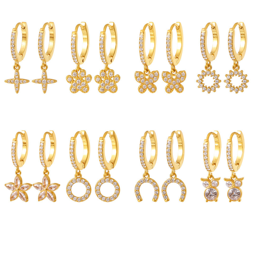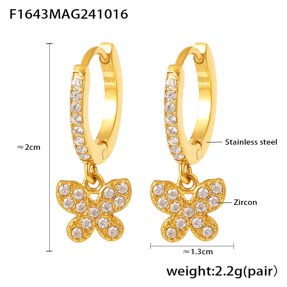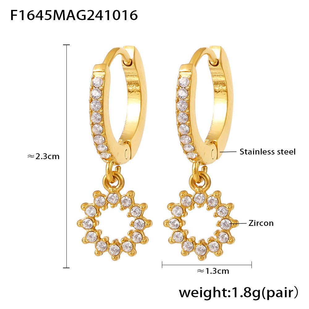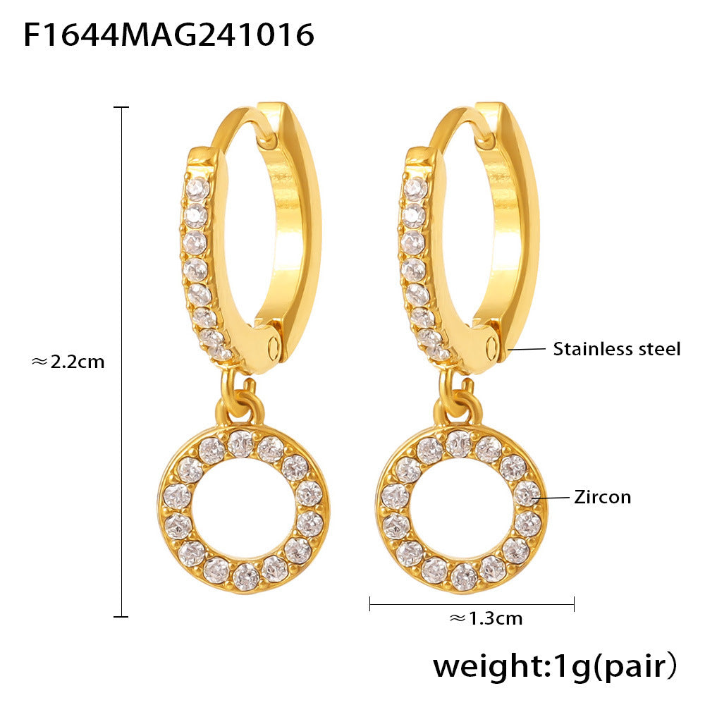B廠【F1639】飾品ins風幾何元素手工鑲鋯石滿鑽耳墜耳環PVD電鍍保色耳飾 24.10-4
