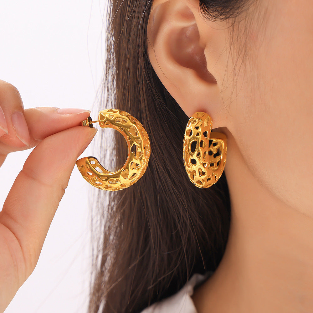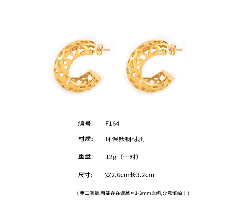 B廠【F164】INS新款鈦鋼鍍18k金鏤空C型耳環女網紅潮流款時尚個性不褪色耳環 24.07-1