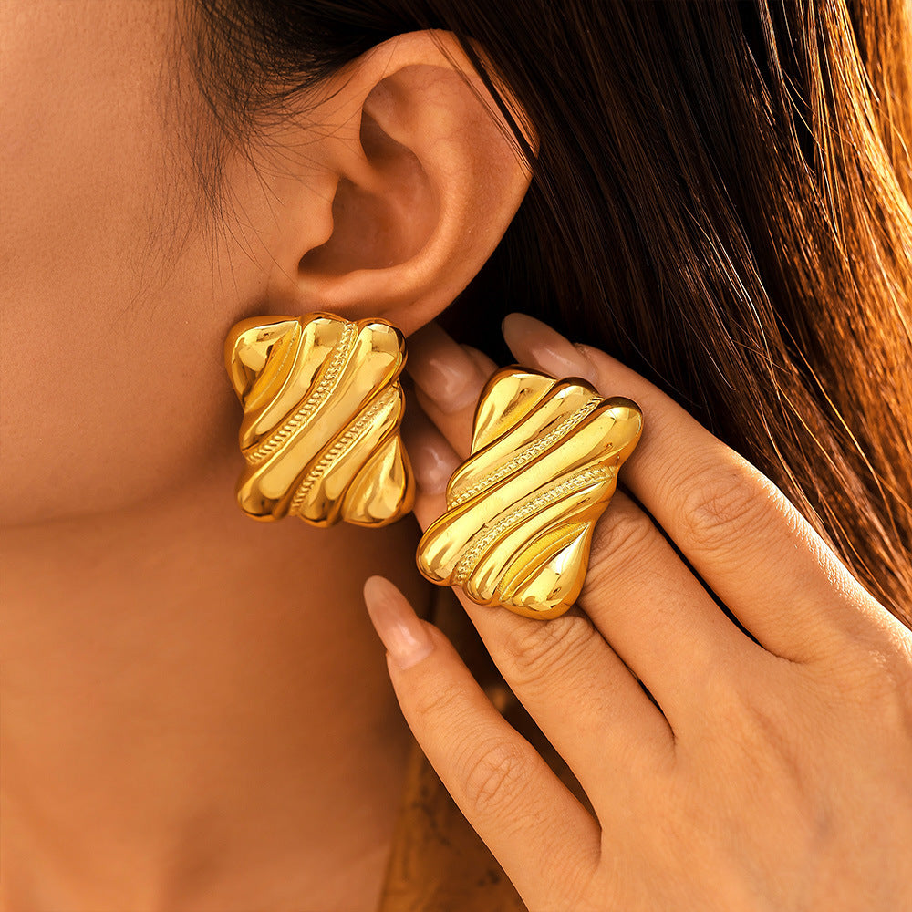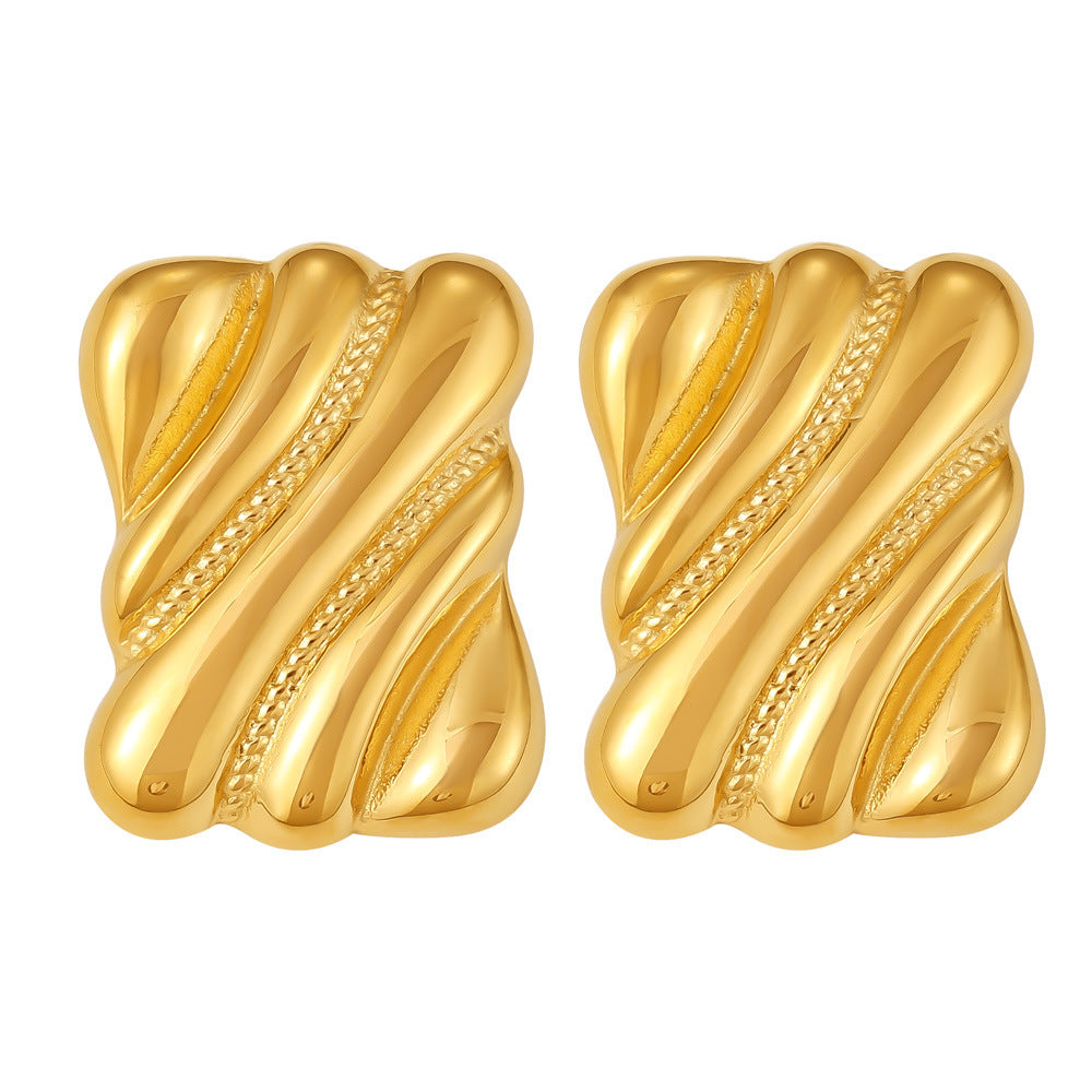 B廠【F1657】ins風跨境誇張方塊螺紋耳環不鏽鋼鍍金保色時髦耳環不過敏 24.10-4