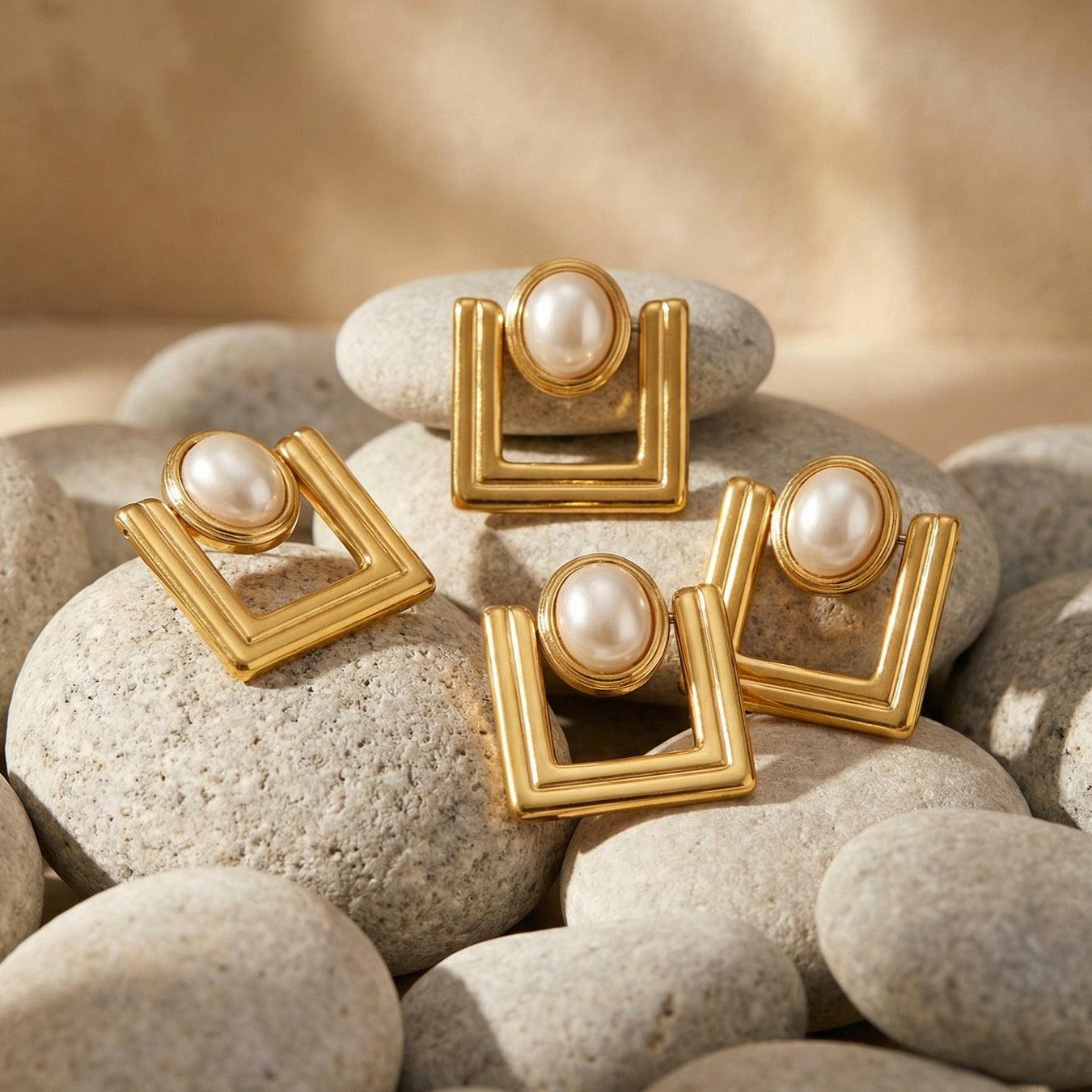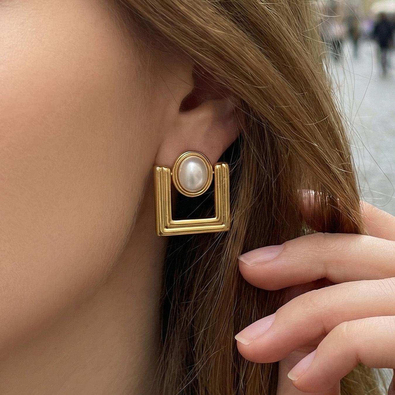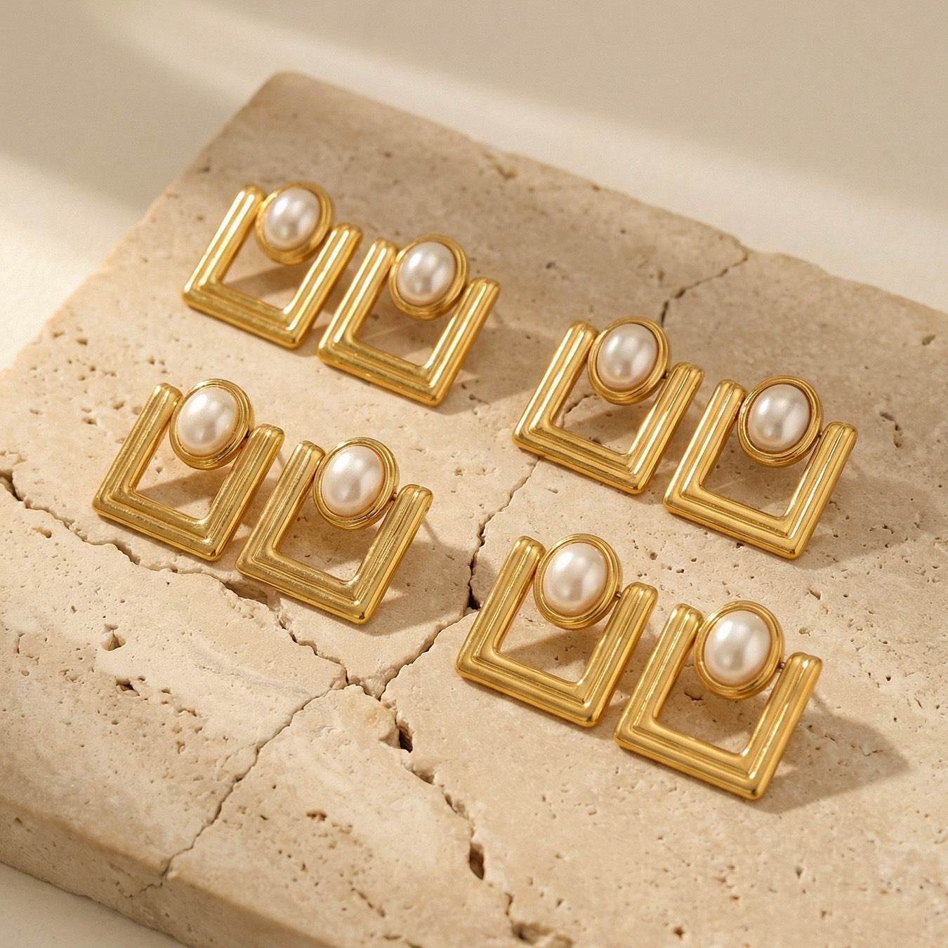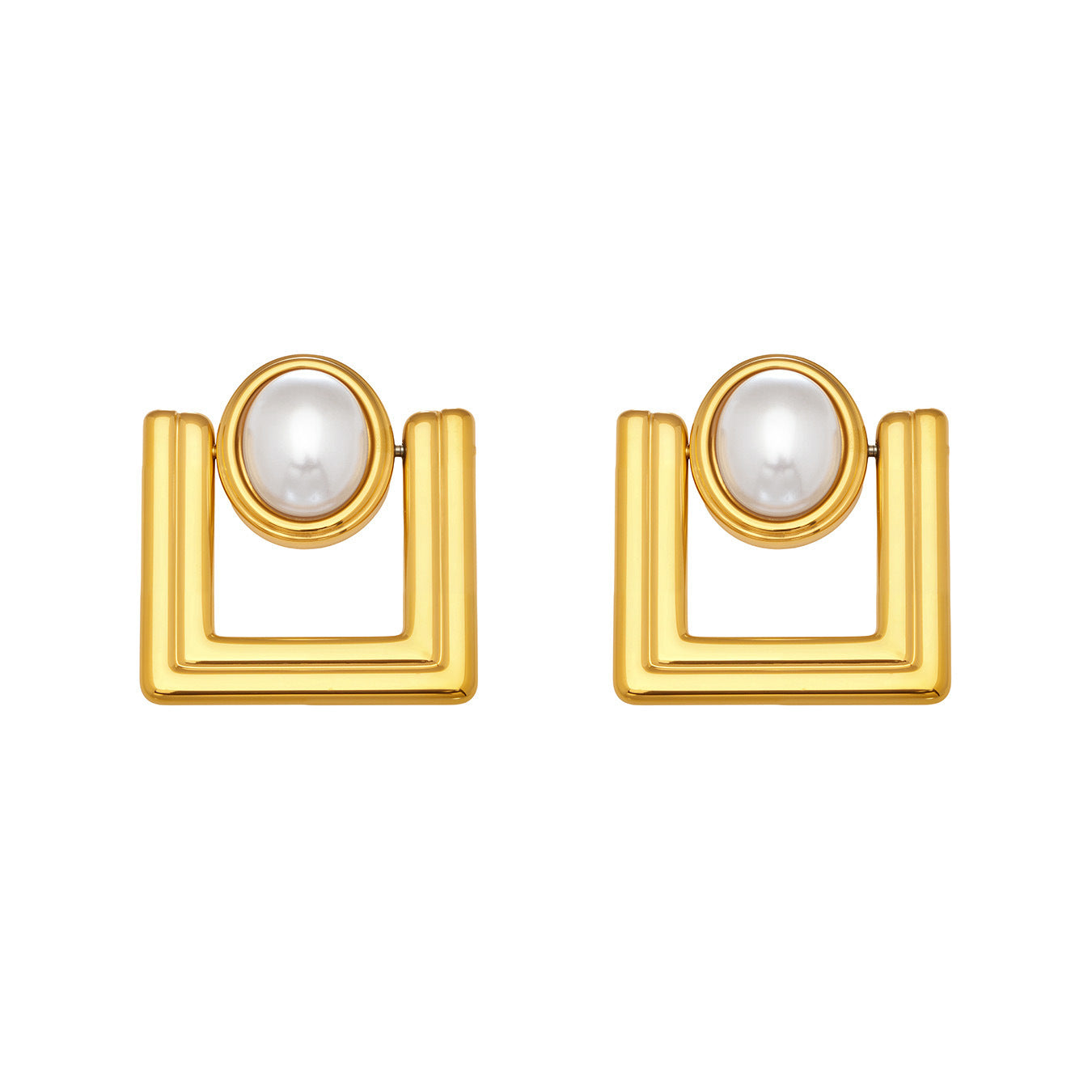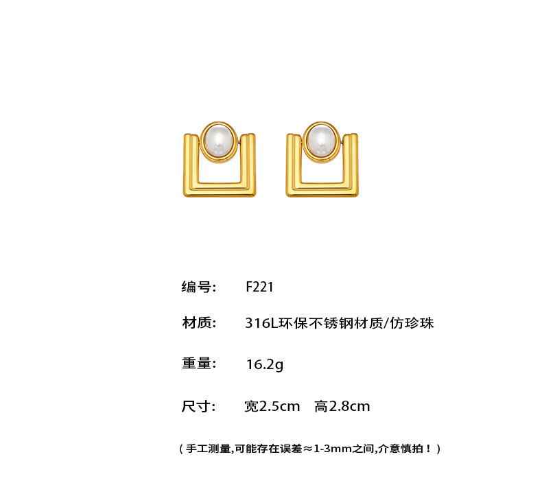 B廠【F221】歐美ins小眾設計感幾何方型仿珍珠耳環不鏽鋼鍍18k真金耳環不掉色 26.04-3