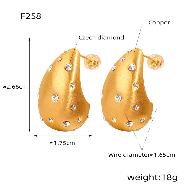 B廠【F258】新款時尚潮流鑲水鑽耳飾女ins風高級設計感18k真金胖乎乎水滴耳釘 24.01-2
