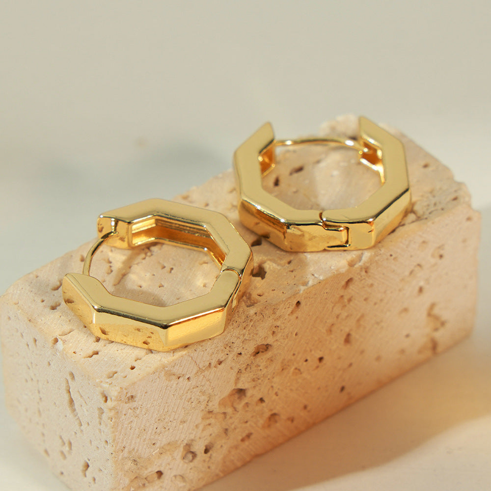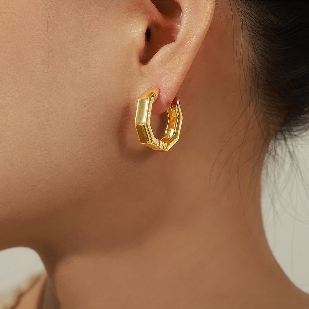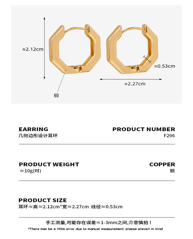 B廠【F296】日韓爆款銅鍍18k金耳環ins優雅百搭幾何多邊形耳扣高級設計感耳飾 24.01-3