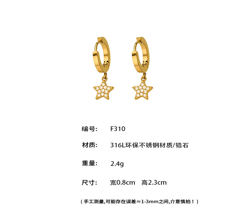 B廠【F310】歐美跨國新款五角星吊墜鑲嵌鋯石耳環簡約時尚百搭耳環不鏽鋼鍍金 26.04-4
