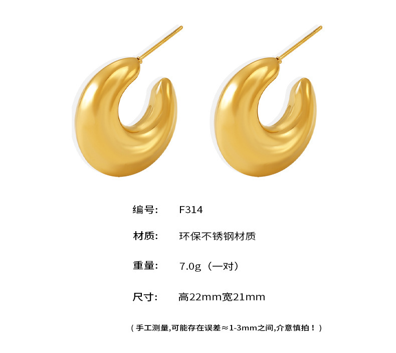 B廠【F314】 月亮空心耳環冷淡風質感不鏽鋼鍍18K真金保色 24.11-2