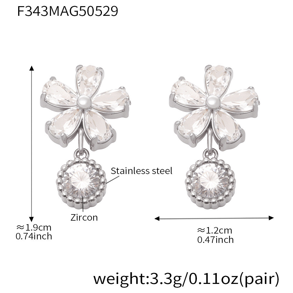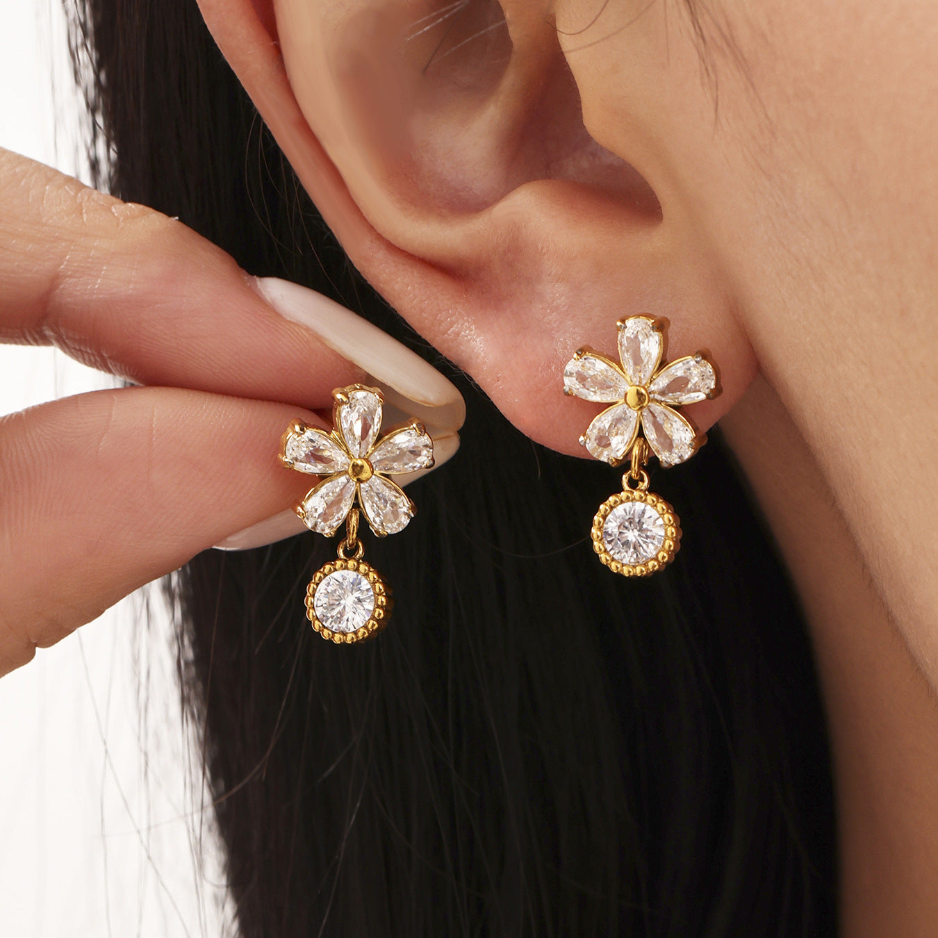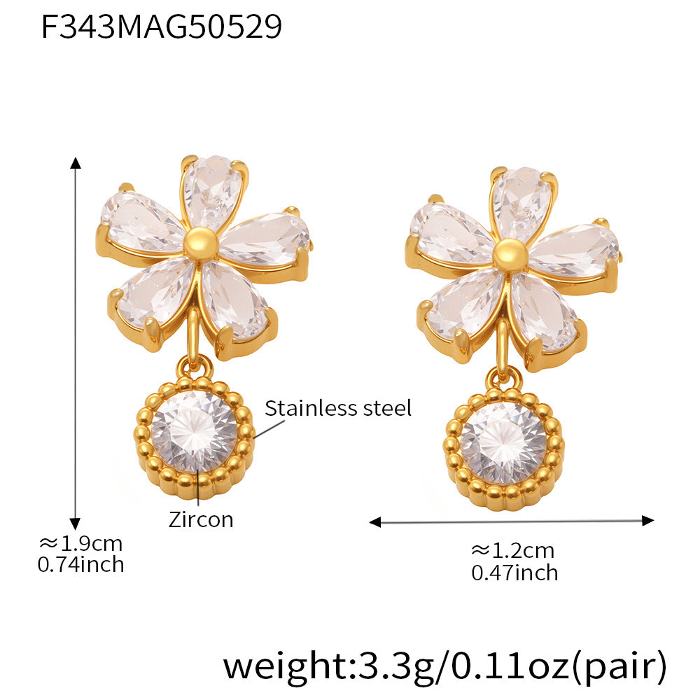 B廠【F343】超閃5A鋯石花朵耳環不鏽鋼材質18k鍍金跨境時尚耳環不掉色 25.06-3