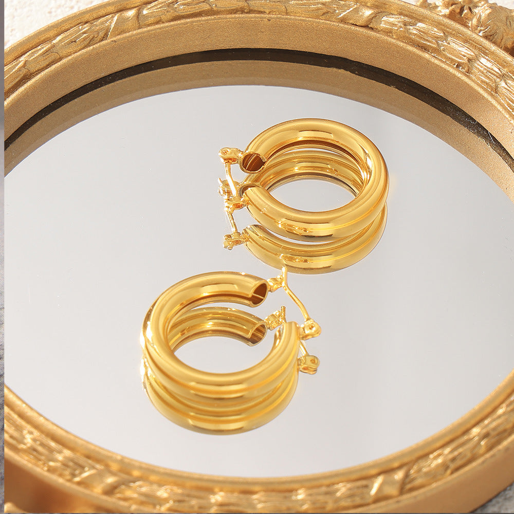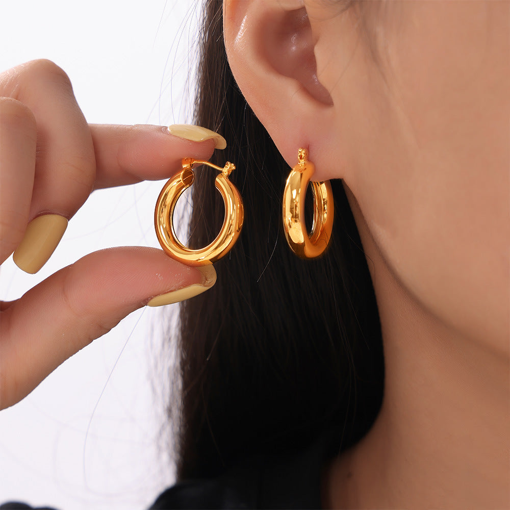 B廠【F373】歐美ins風小眾幾何空心素圈耳環輕奢感女銅材質鍍金簡約百搭耳環 24.07-4